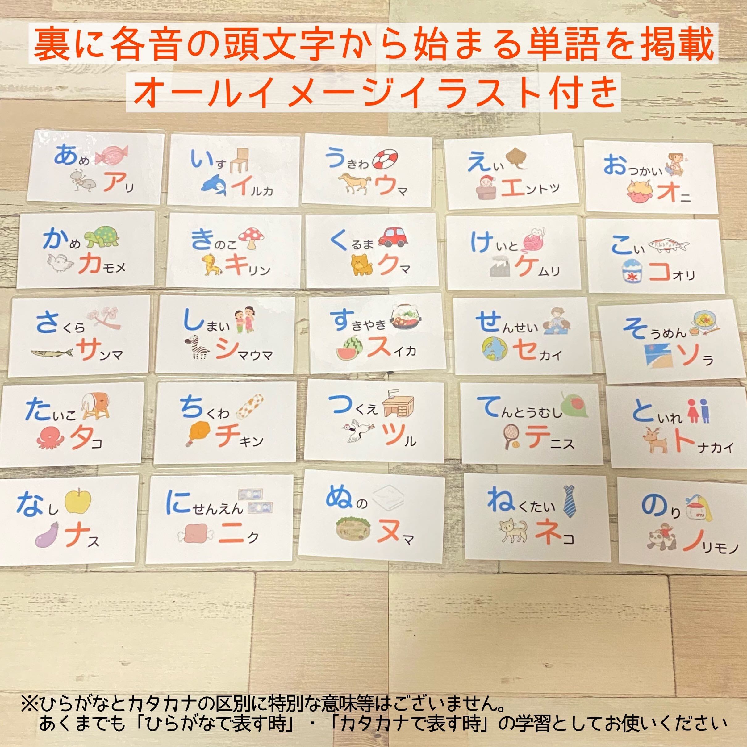 あいうえお等の音全46音のラミネートカードです。