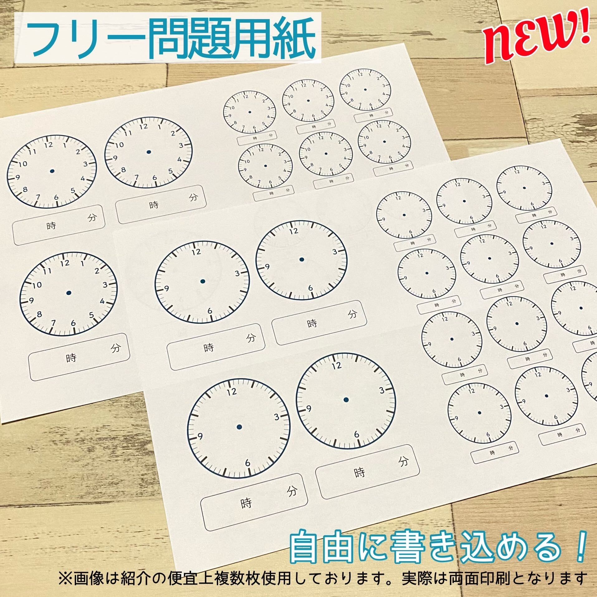 時計の読み方/表し方を学習できるカード、時計台紙、問題用紙のセットです。