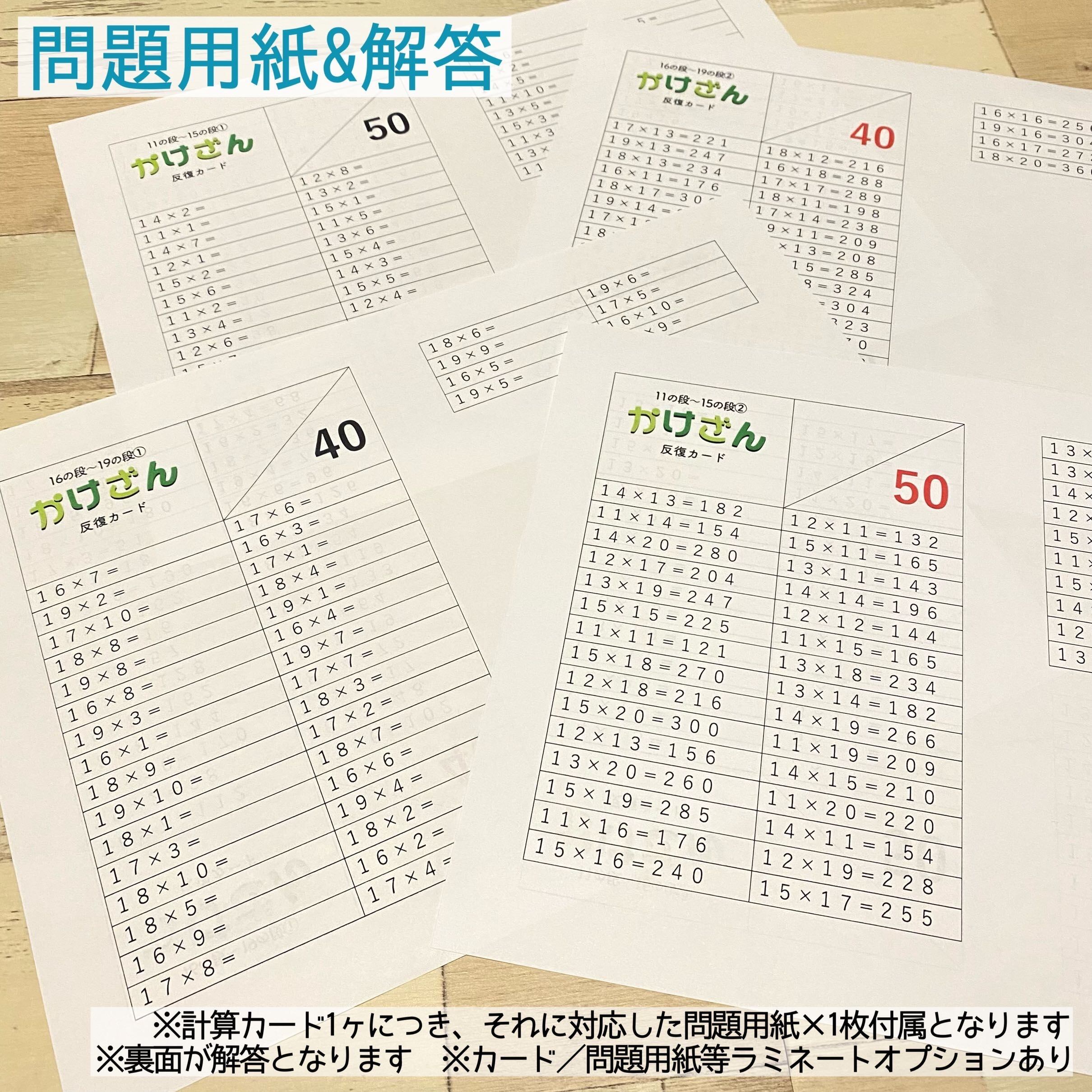 11の段〜19の段のかけ算が学べる計算カードです。