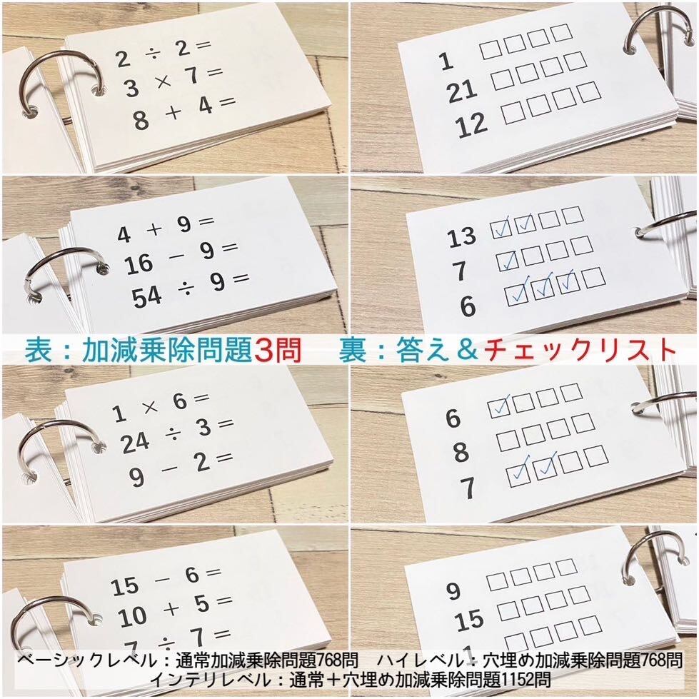 算数 瞬間計算カード コンプリートセット たし算 ひき算 かけ算 わり算 小学生 中学生 計算カード 知育教材 知育玩具 数学 中学受験 小学受験 高校受験 定期テスト 学力テスト 期末テスト