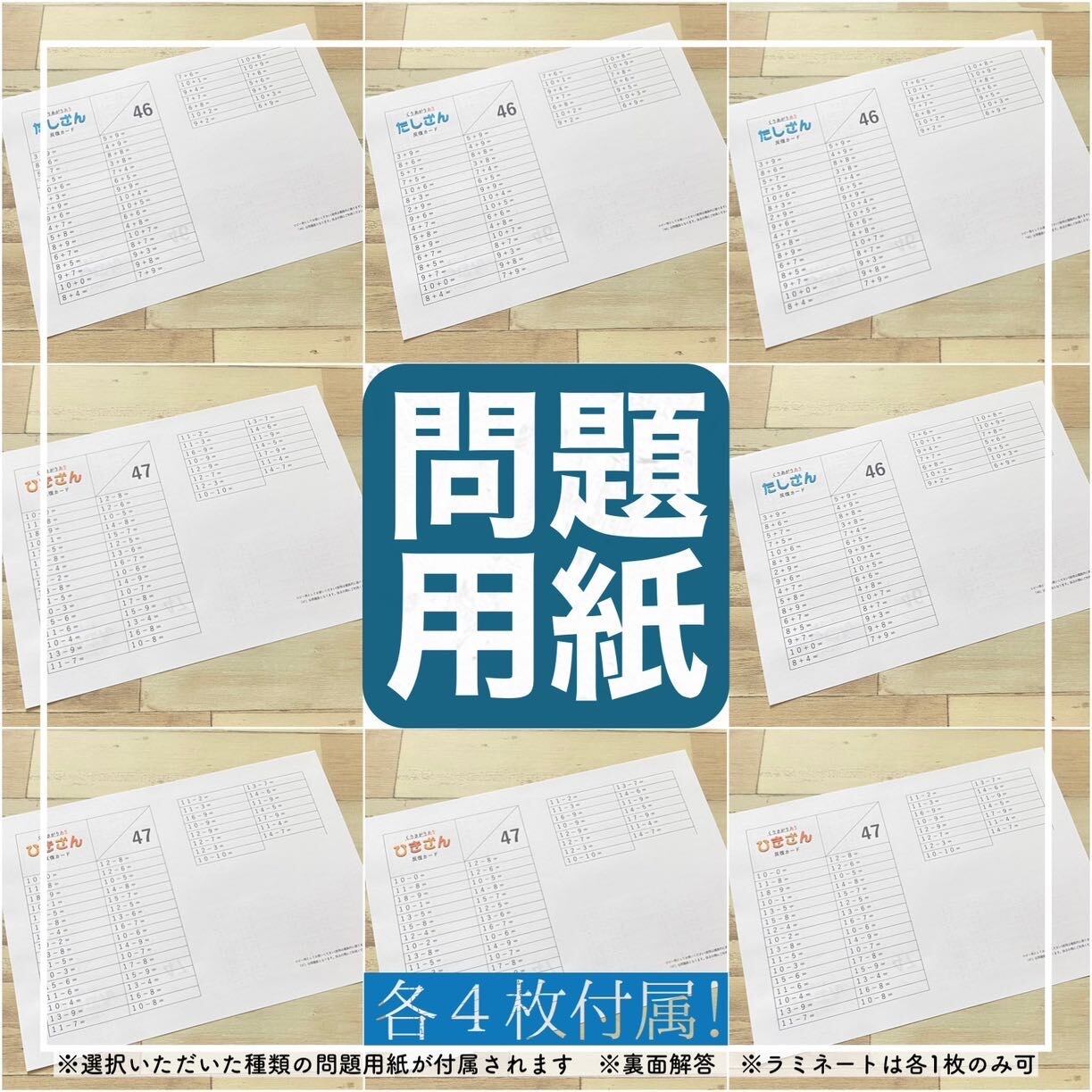 対象の計算カードの中より、お好きな計算カードを組み合わせて選択いただけるセットです。付属の文房具や問題用紙でお届け後すぐに学習に取り組めます。
