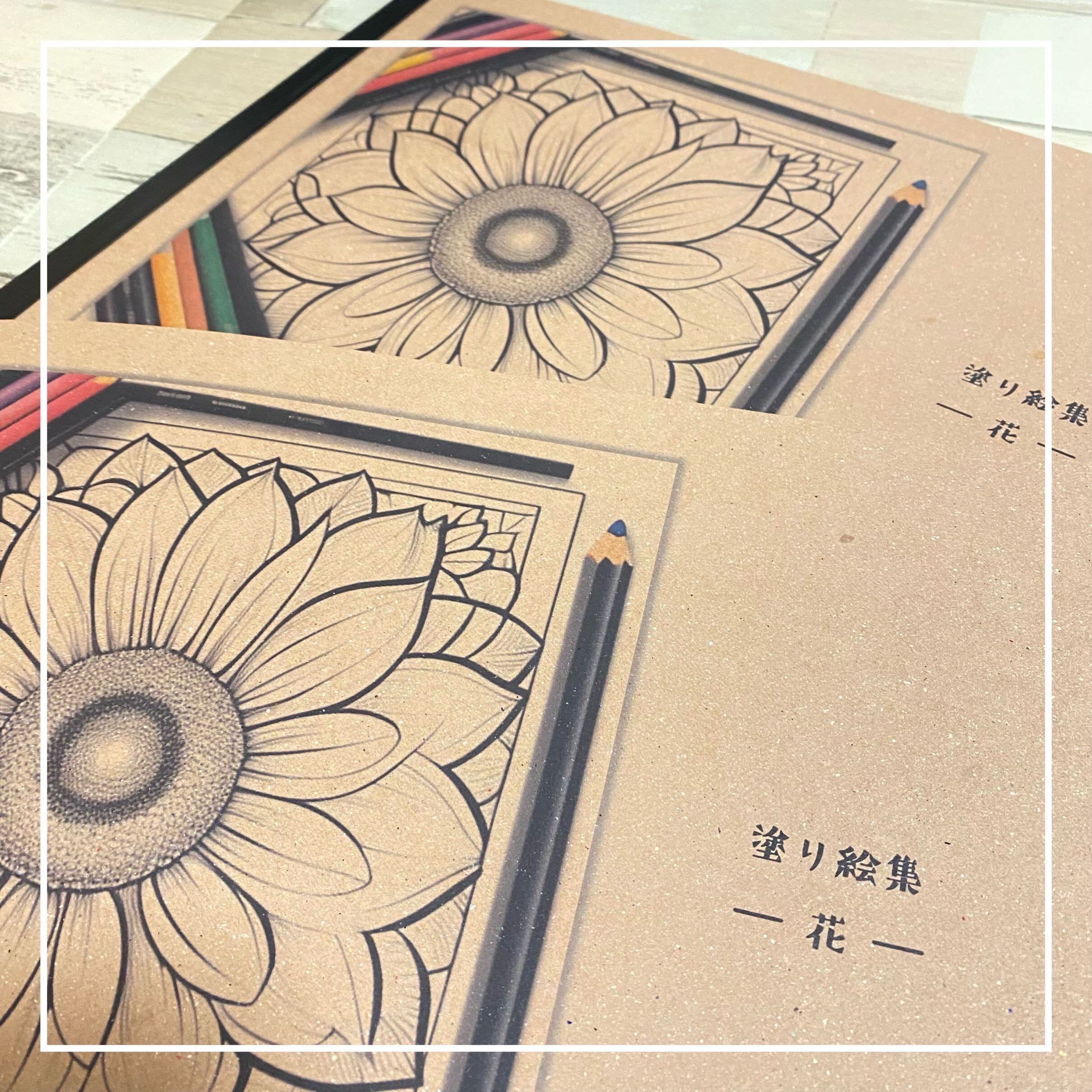 塗り絵集 ー 花 ー アート ぬりえ お絵描き デッサン 知育 介護 集中力 絵本 活性化 介護 認知症 リハビリ 知育教材 保育 知育玩具 幼稚園 保育園 紙芝居 大人 デッサン スケッチ お絵描き