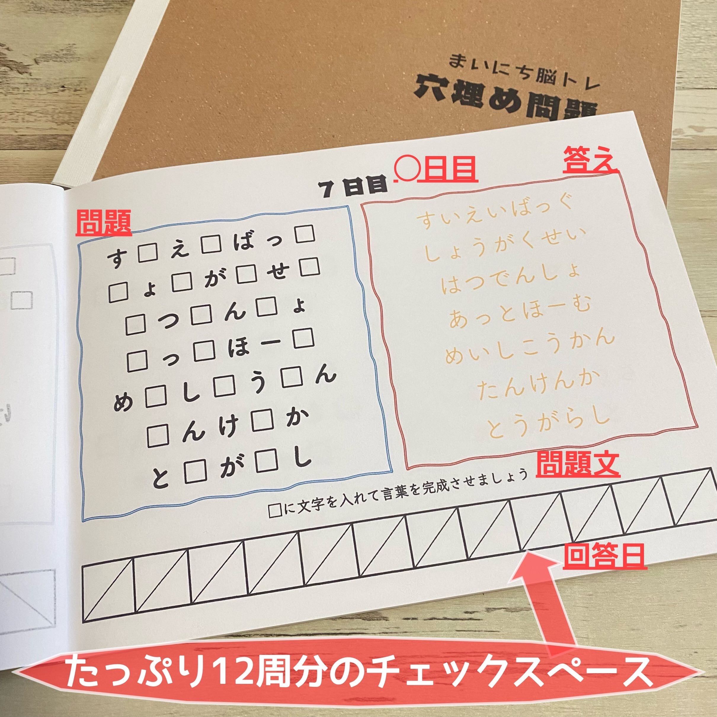 【まいにち脳トレドリル】穴埋め問題 ドリル 問題集 脳トレ 頭の体操 活性化 ミニゲーム 脳年齢 クイズ プリント ドリル 千本ノック なぞなぞ ひらめき