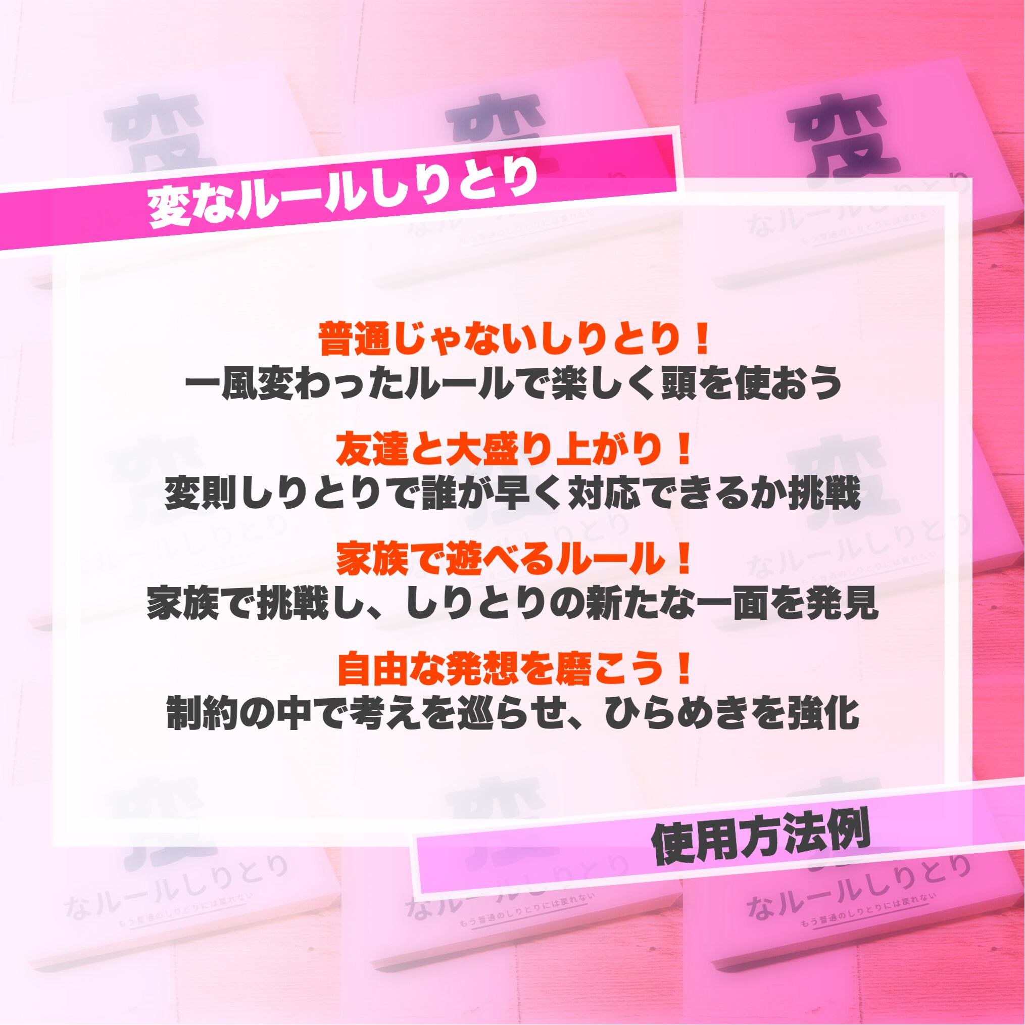 【変なルールしりとり】ボードゲーム パーティー 趣味 友達 家族 論理的思考力 創造力 判断力 協調性 旅行 レクリエーション 幼稚園 保育園 小学生 中学生 高校生 大学生 リハビリ 介護 パズル