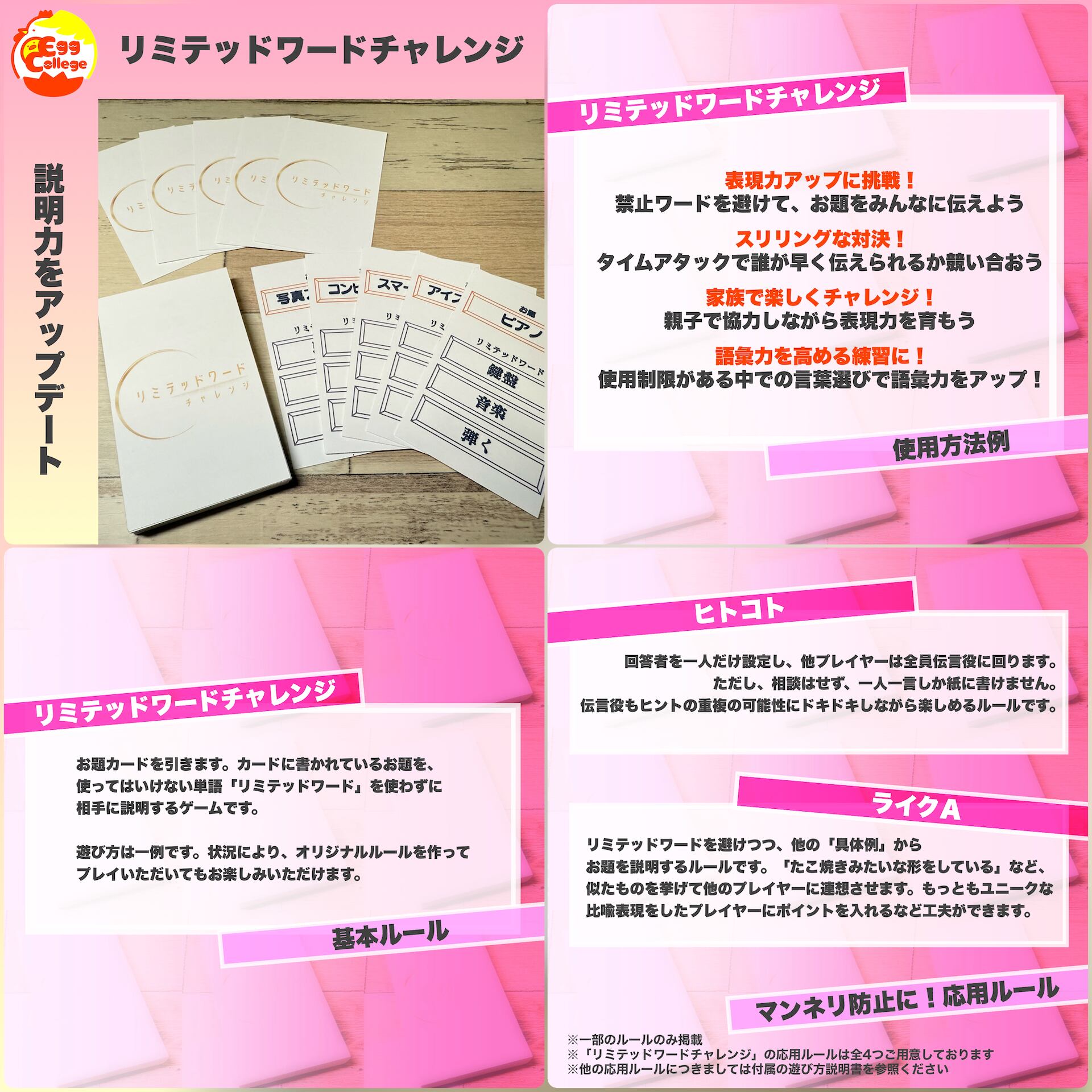 各ゲームの基本ルール・応用ルールおよび使用方法例につきましては画像をご参照ください。