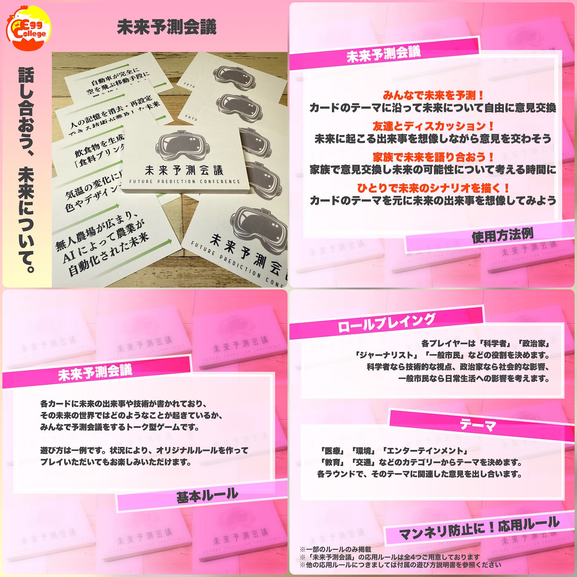 未来に起こりそうな事柄について、自由にアイデアや意見を交換するトーク型ゲームです。