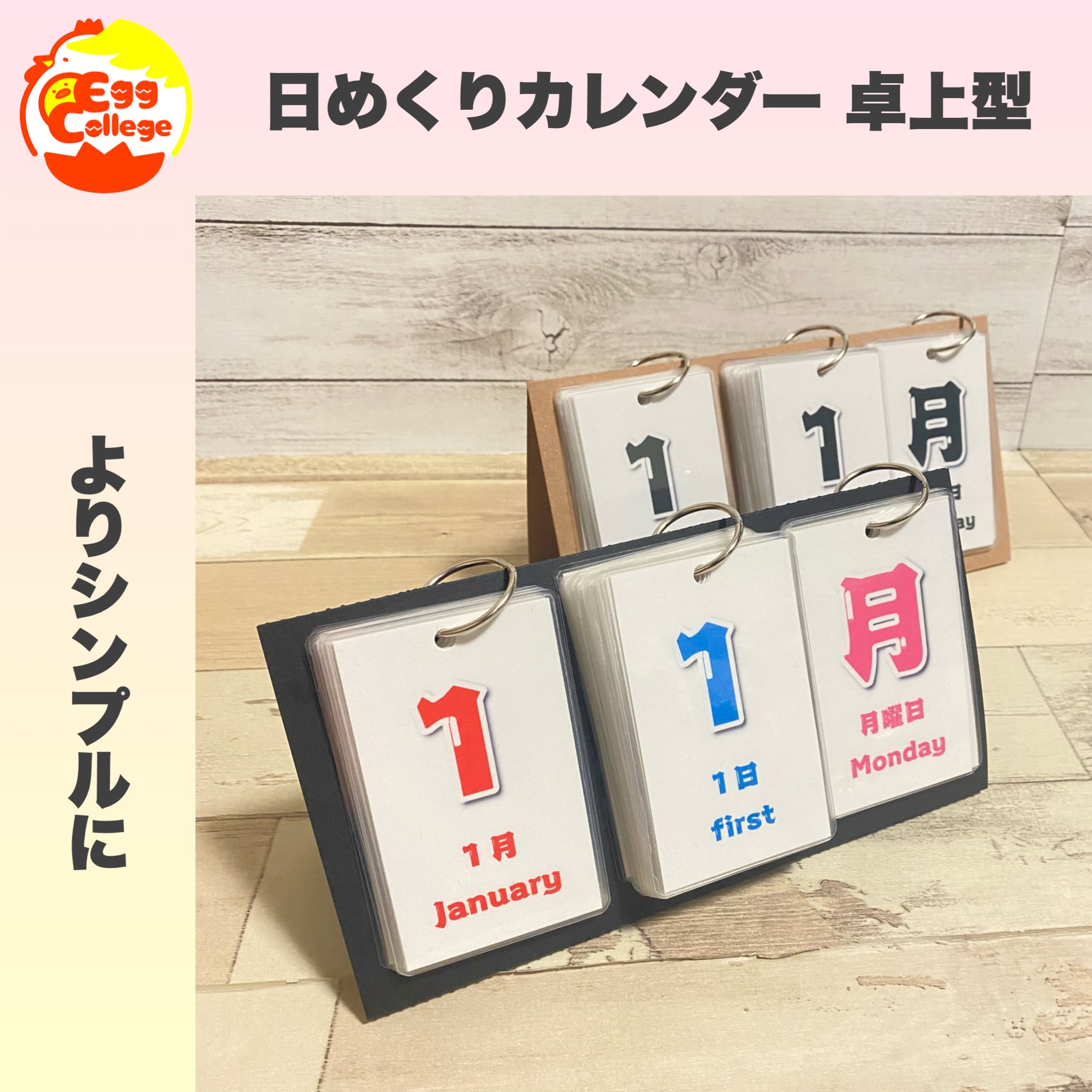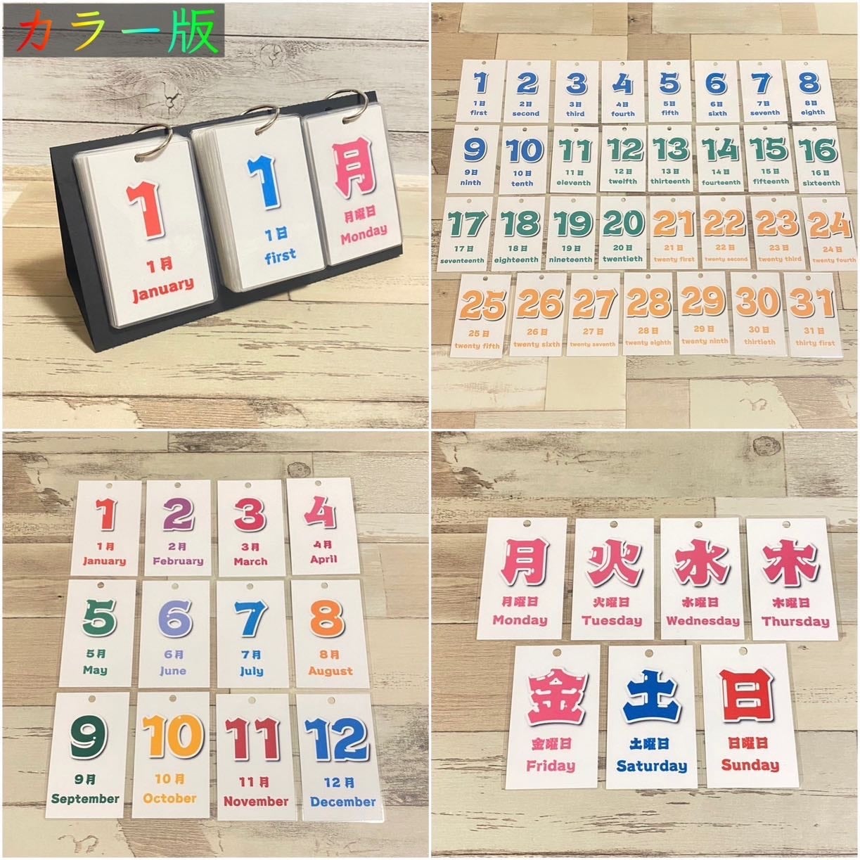 同時販売中の知育向け日めくりカレンダーに比べ、日付の読み方/天気カード/イラスト等がないため、よりシンプルなタイプをお求めの方におすすめです。