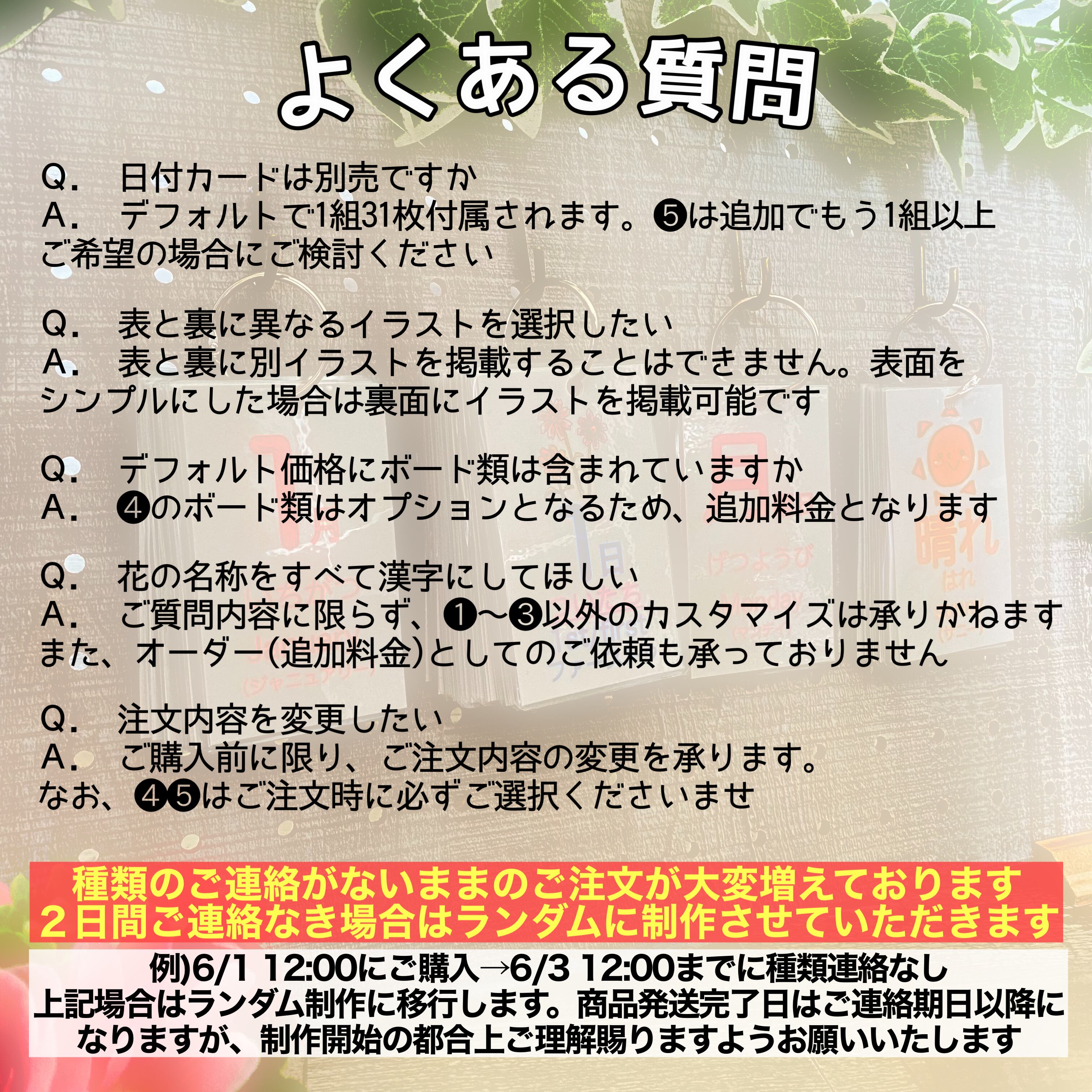 ※❺ご希望時はご希望の種類のご連絡を「備考欄」に記入しご注文お願いします