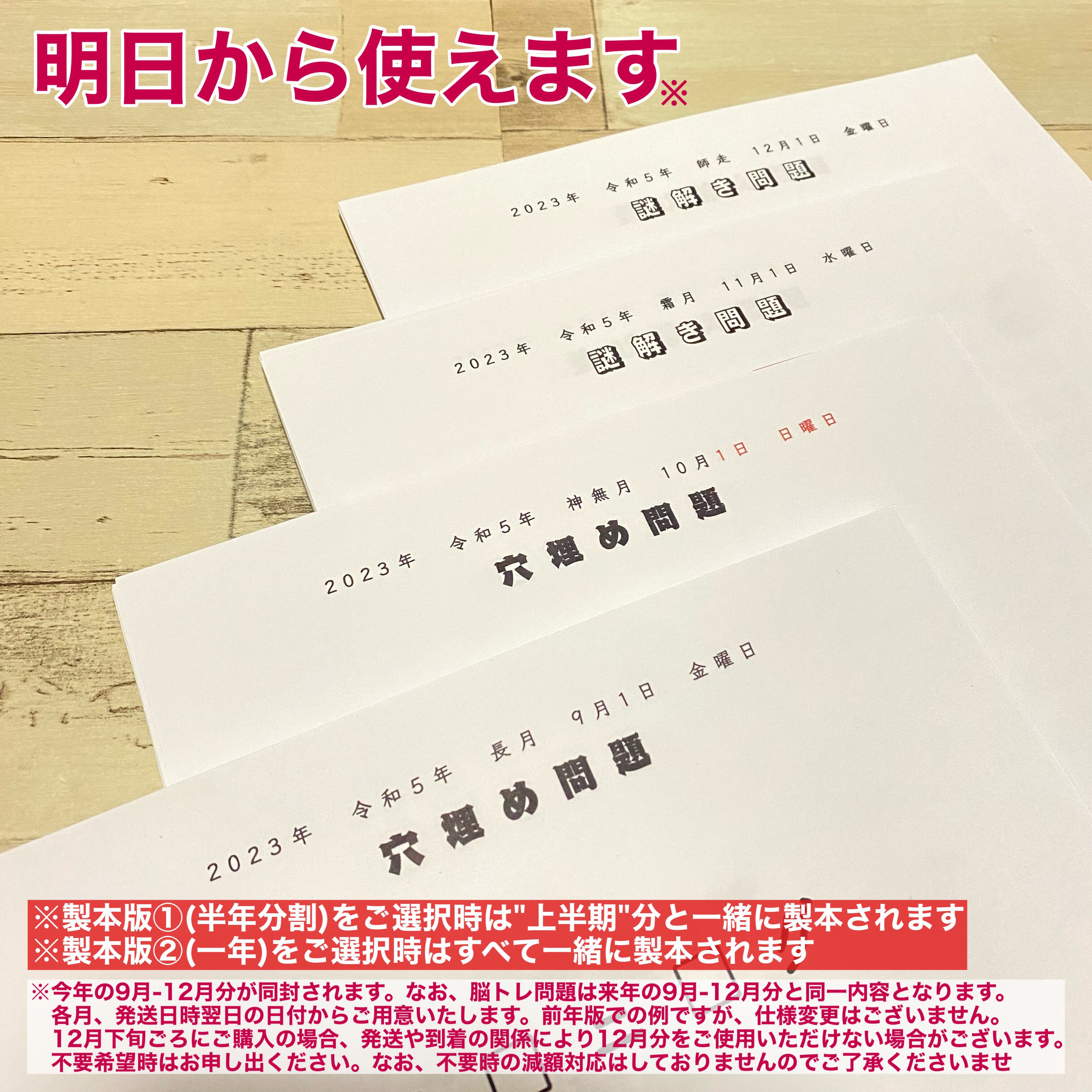 脳トレ日めくり用紙:A5サイズ(A4コピー用紙の半分)