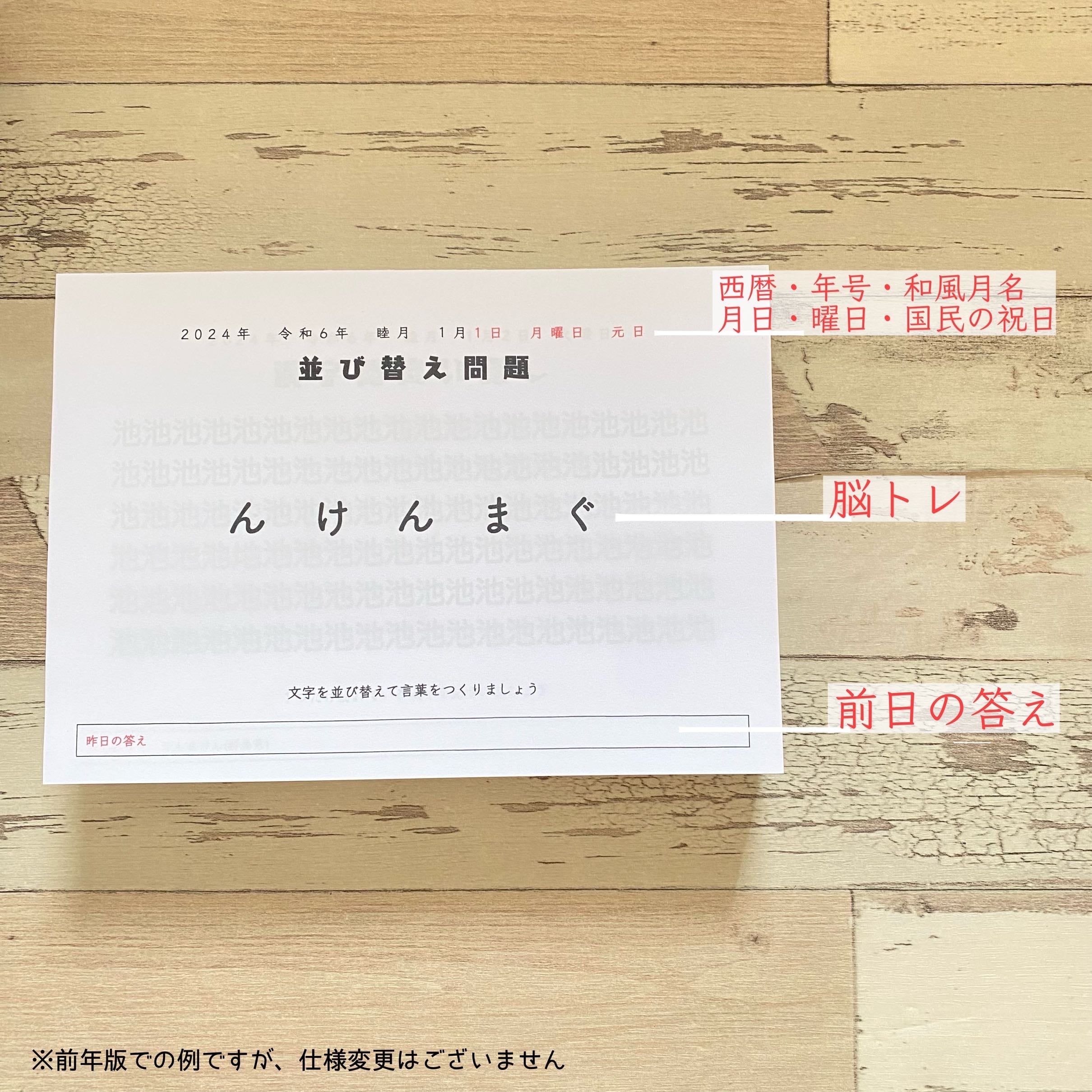 2026年1月1日〜2026年12月31日まで使用できる、卓上型の「脳トレ」日めくりカレンダーです。