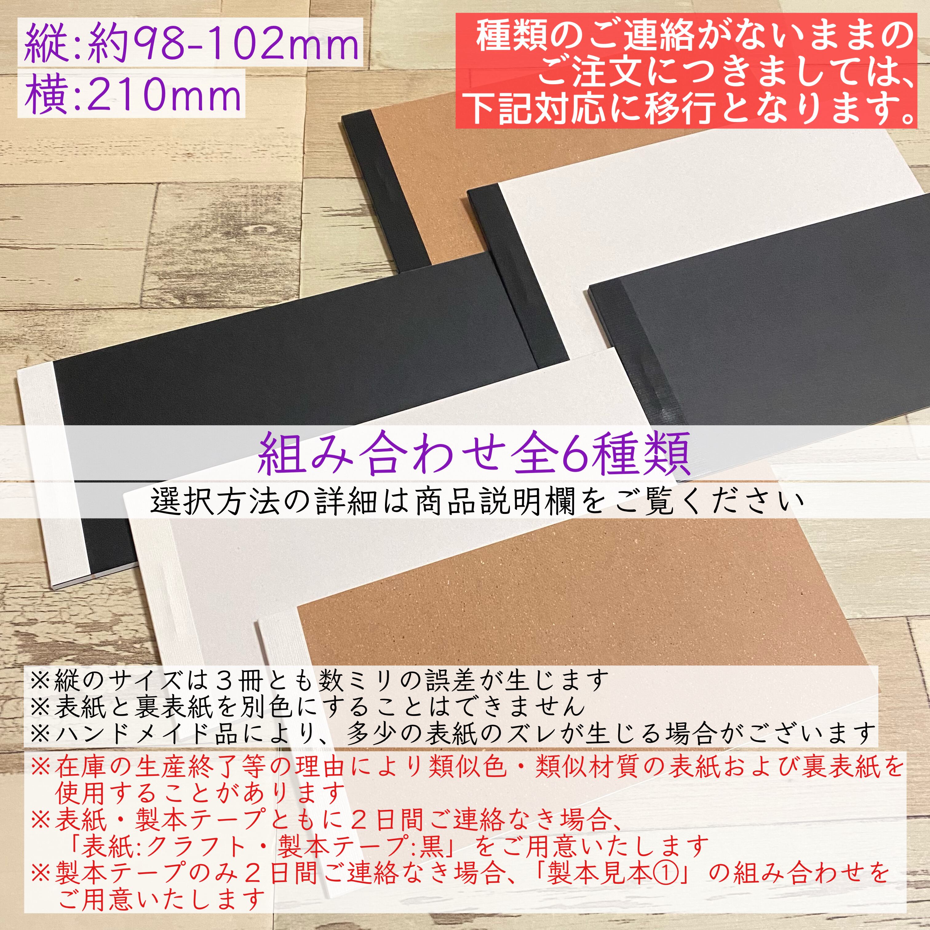 ※表紙・製本テープともに2日間ご連絡なき場合、「表紙:クラフト・製本テープ:黒」をご用意いたします