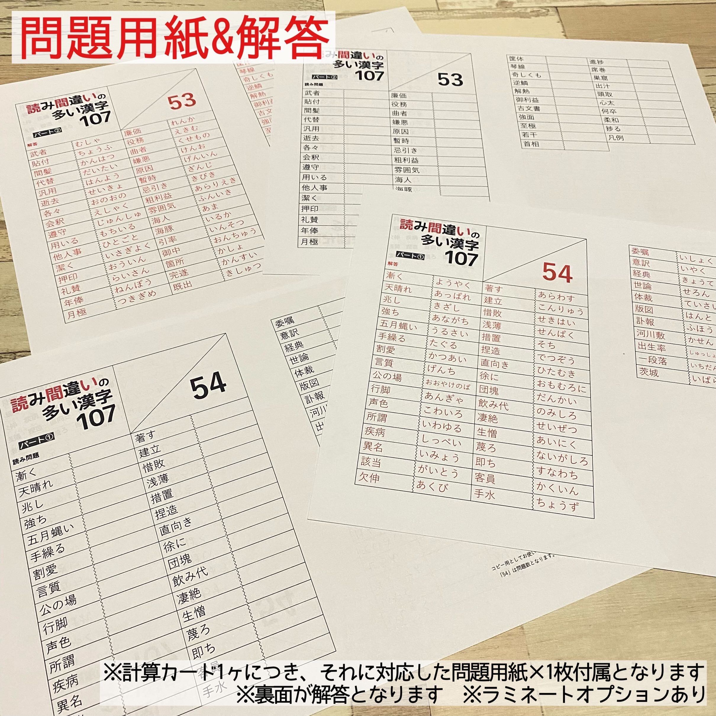 この単語カードでは、そのような読み間違いの多い漢字だけを107個集めました。