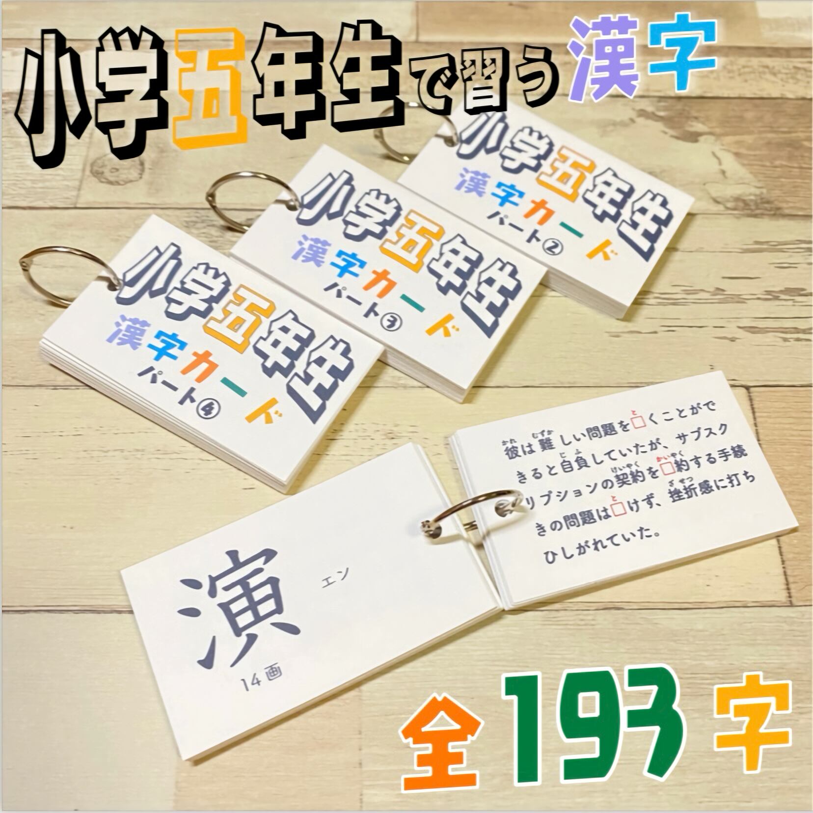 小学5年生で習う漢字全193字が学べる漢字カードです。
