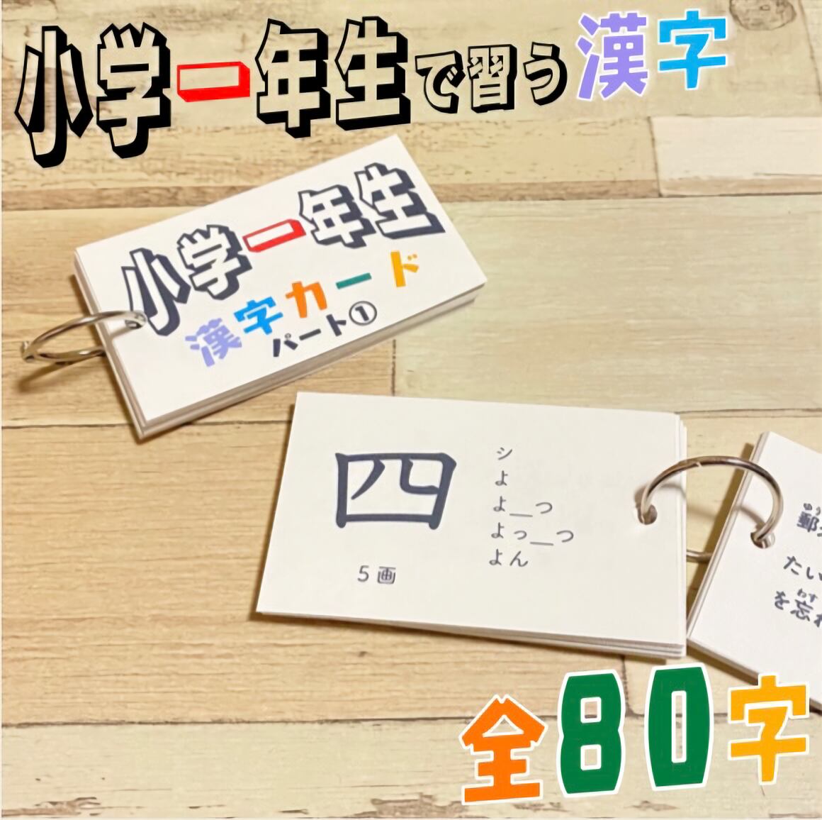 小学1年生で習う漢字全80字が学べる漢字カードです。