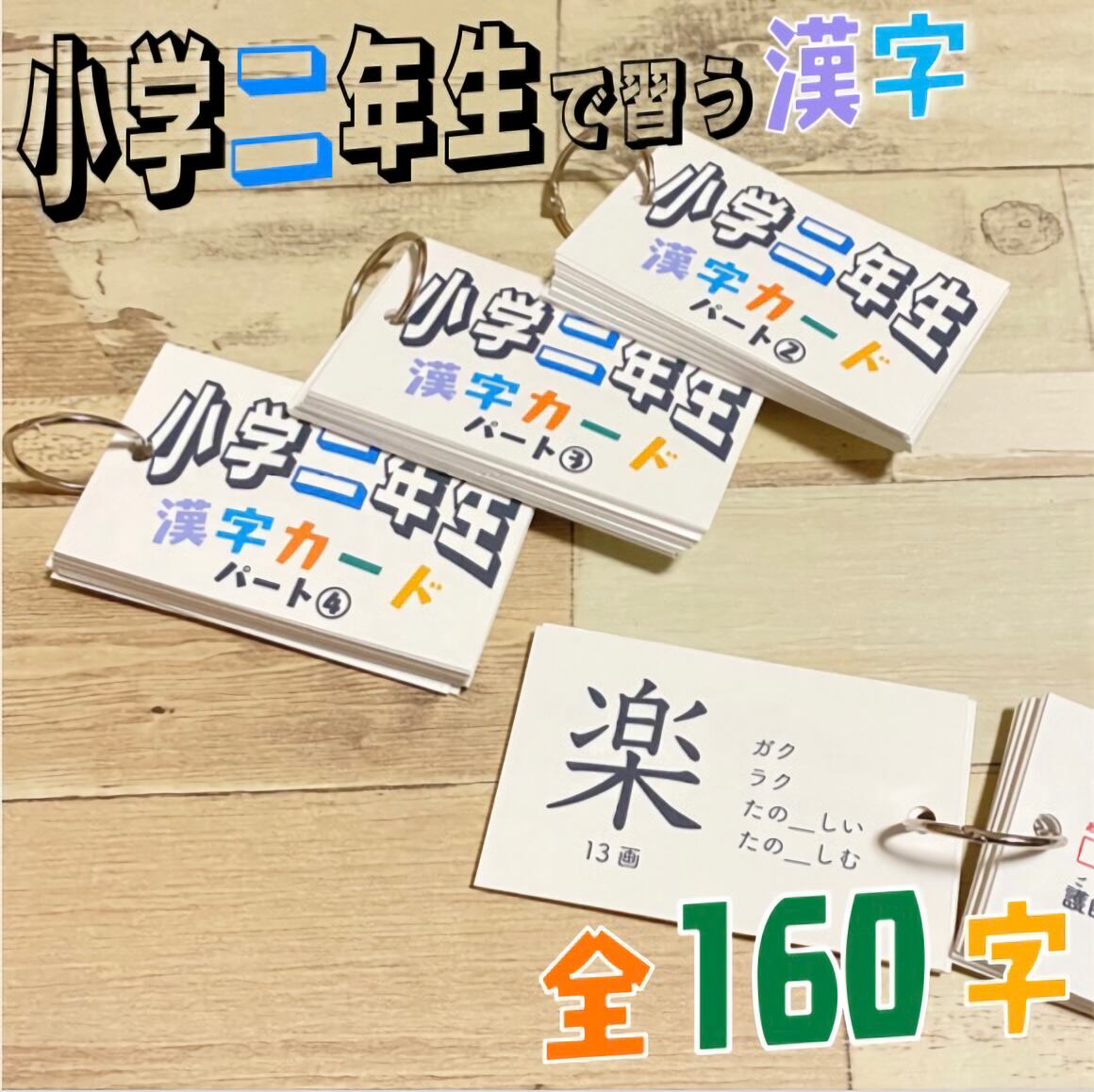 小学1年生で習う漢字全80字・2年生で習う漢字全160字が学べる漢字カードです。