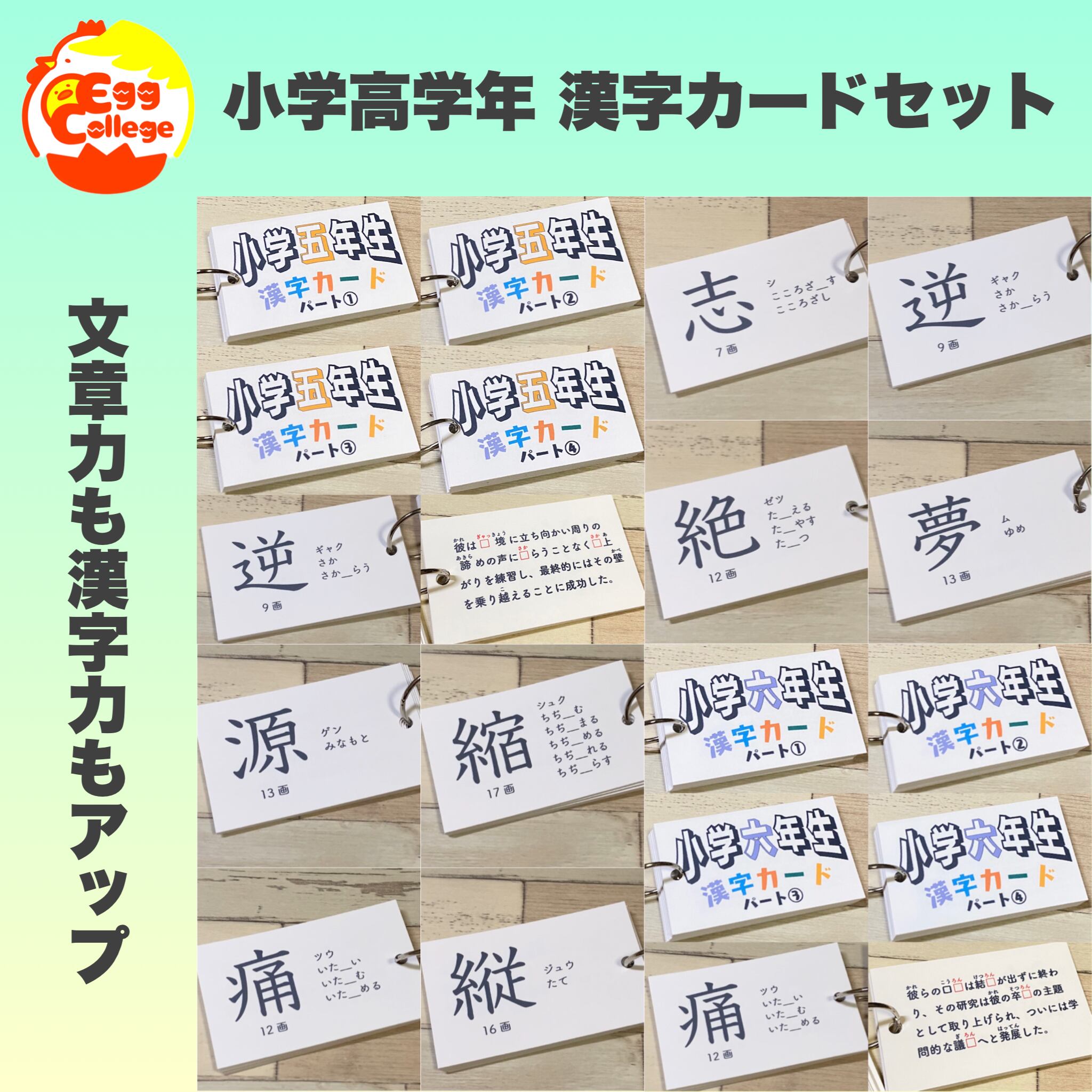 小学5年生・6年生で習う漢字カードのセットです。このページでご注文時のみ、通常合計価格よりお安くお求めいただけます。