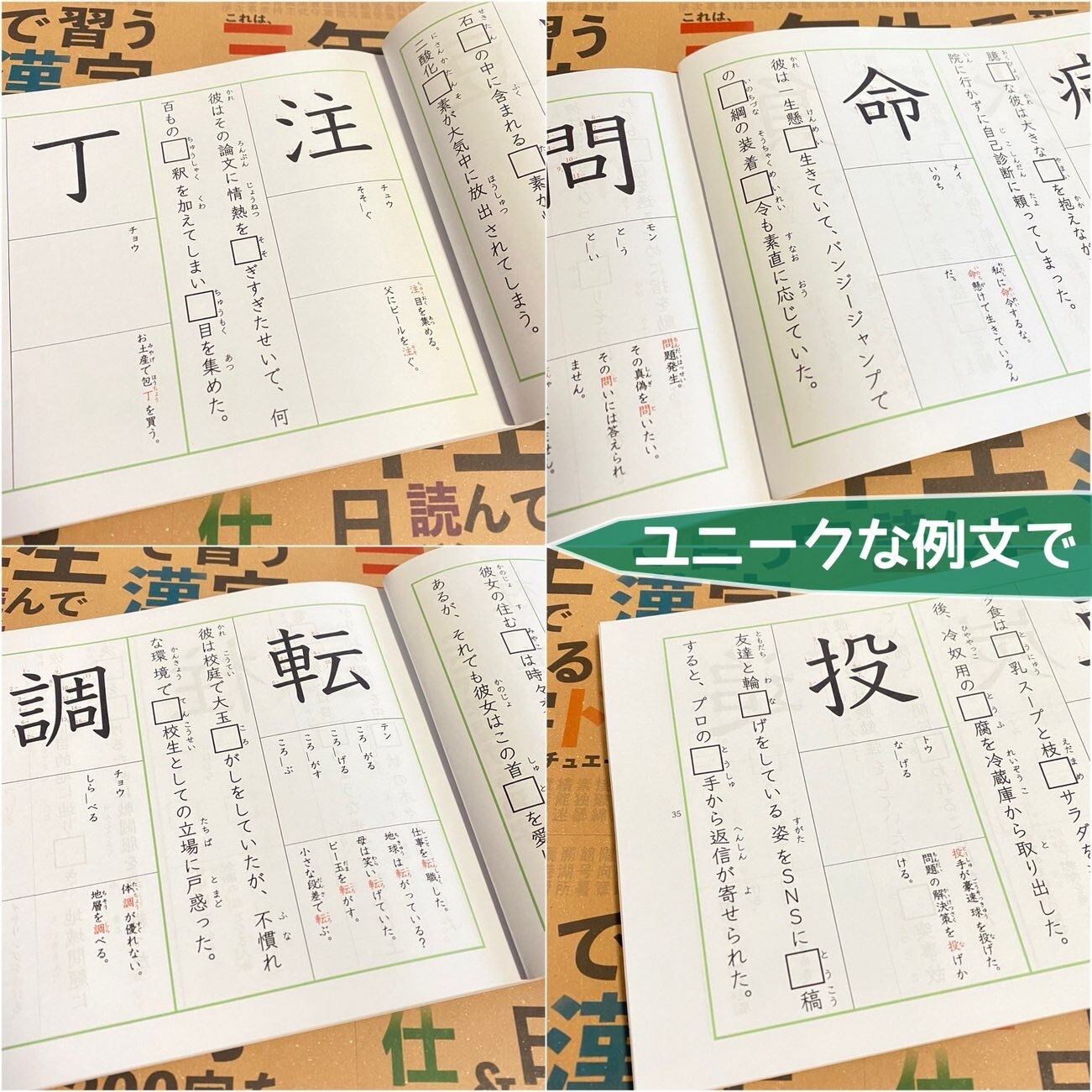 各学年全10通りの仕事編&日常編の文章を収録しており、1セクションにつき20個の漢字が学べる形式となっております。