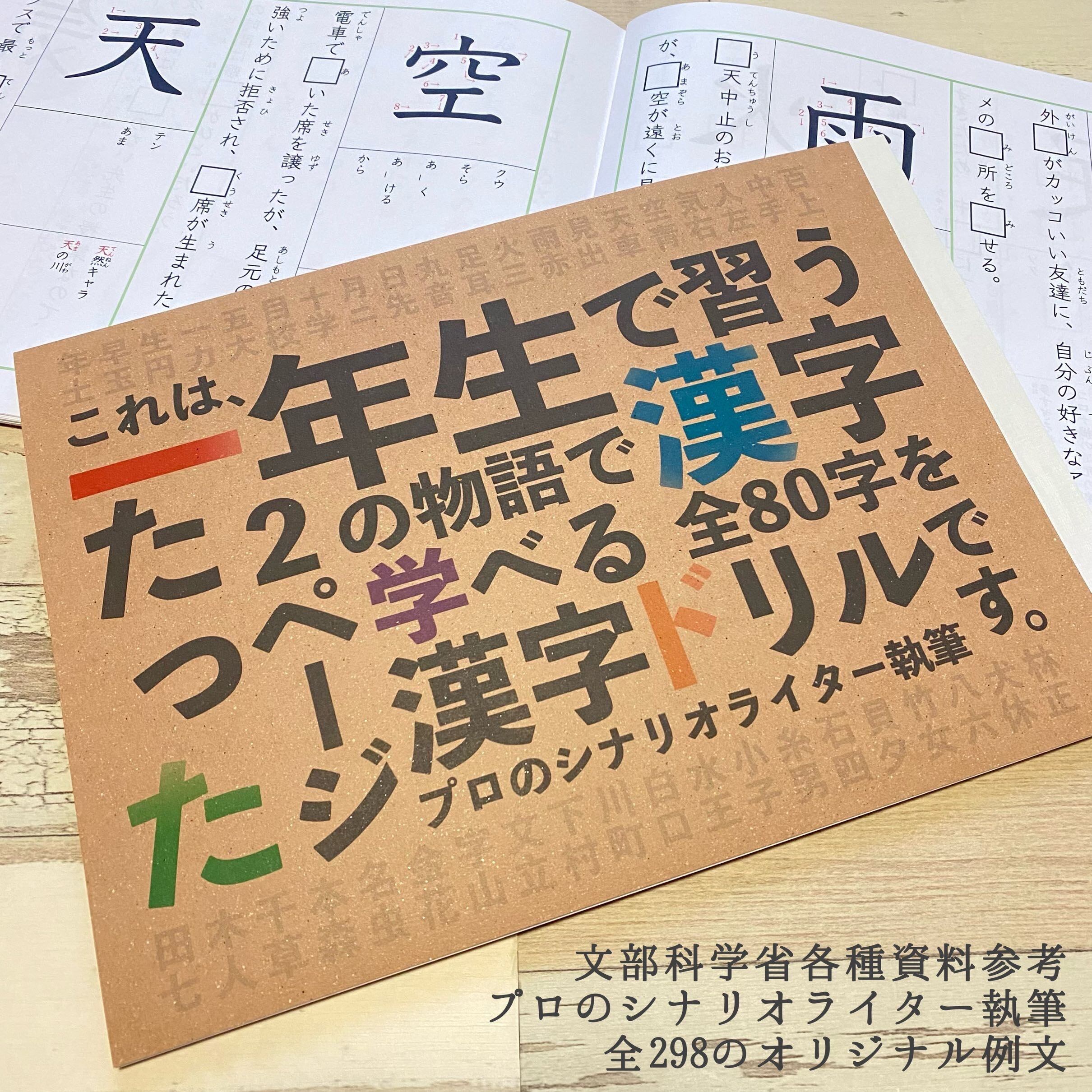 漢字ドリル『これは、一年生で習う漢字全80字をたった2ページの物語で学べる漢字ドリルです。』全72ページ