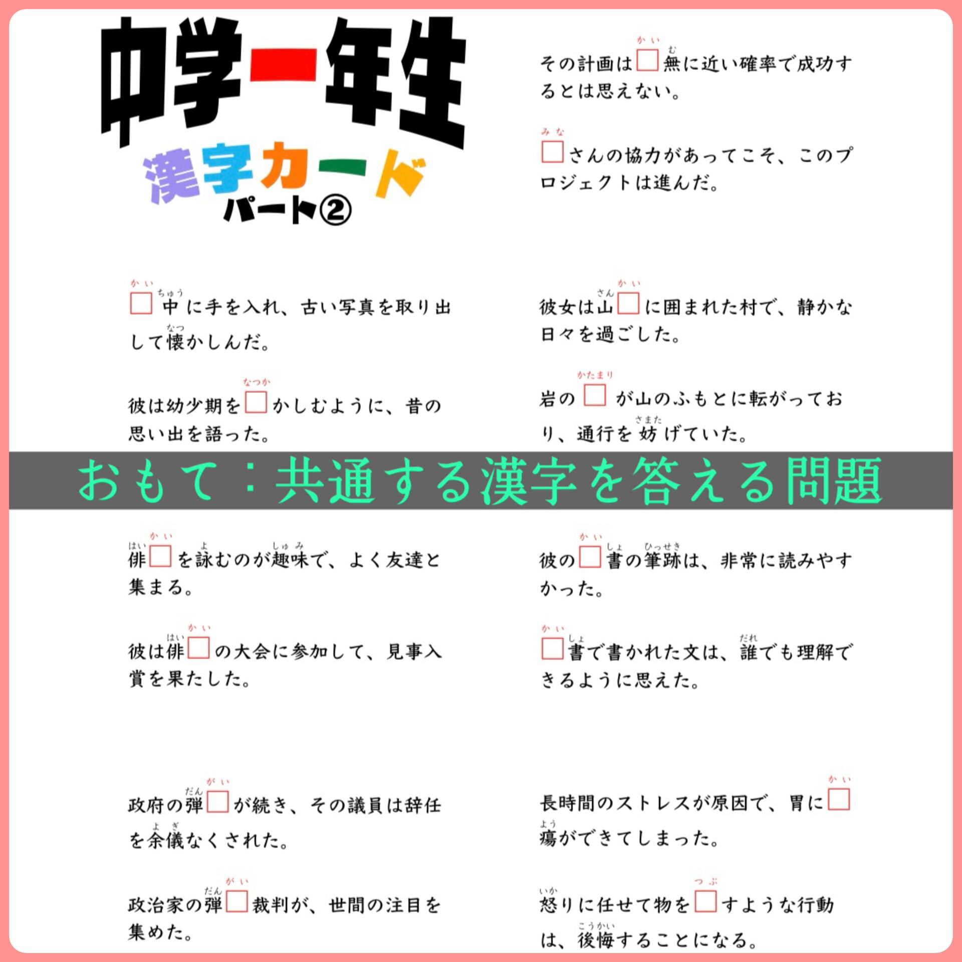 中学一年生 漢字カード 暗記カード 中学生 中学校 テスト対策 国語 検定 1年 定期テスト