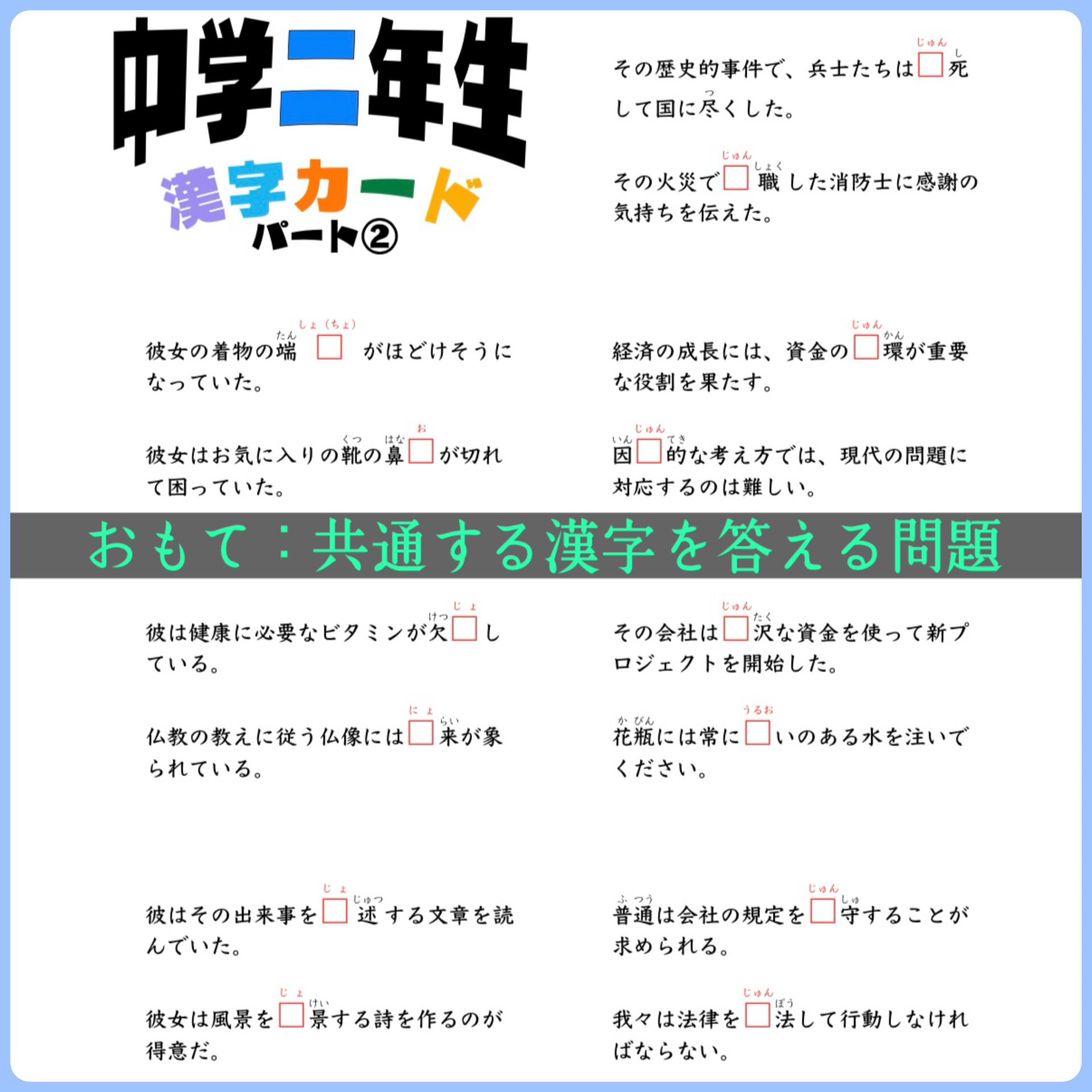中学二年生 漢字カード 暗記カード 中学生 中学校 テスト対策 国語 検定 2年