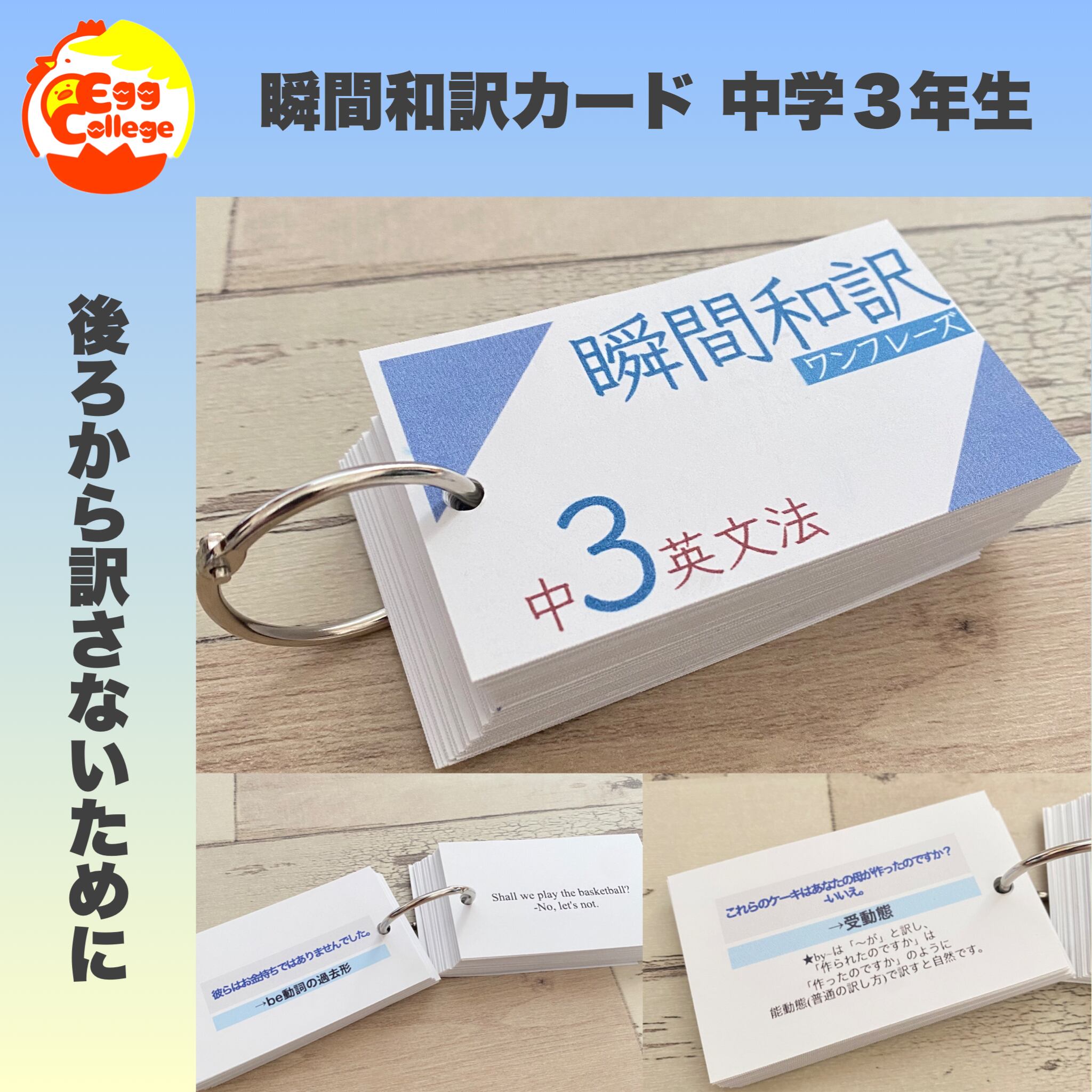 瞬間和訳カード 中学3年生 高校受験 高校入試 検定 中学英語 中学英文法 期末テスト 夏休み 復習 自主学習 定期テスト 中間テスト 復習テスト 暗記カード 中学生 高校生 和訳 英訳 英作文