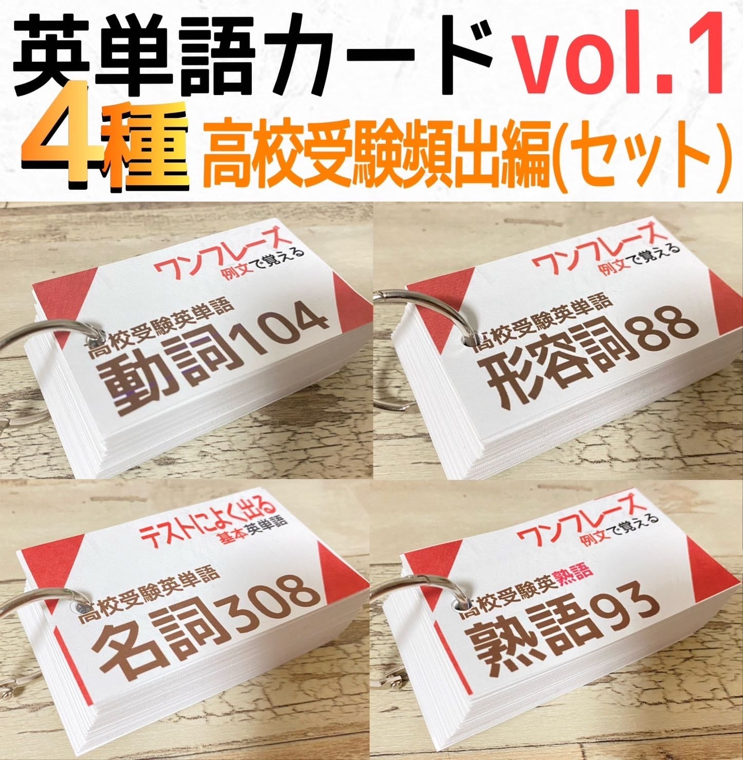 高校受験等に必要な語彙を効率よく覚えられる、英単語カード4種セットです。