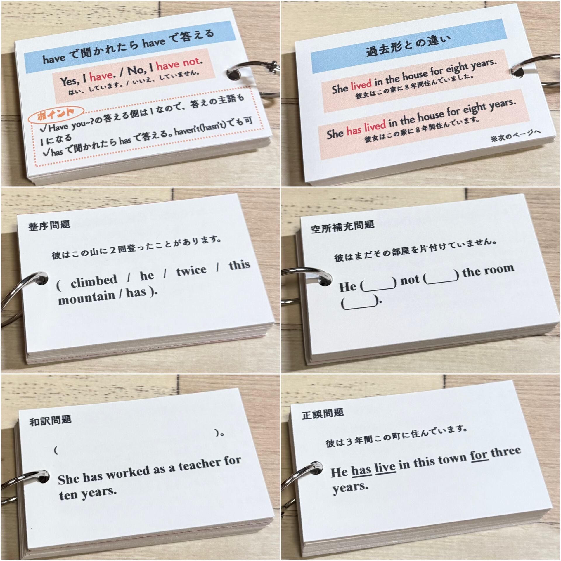 【現在完了形】単元別英文法カード 中学生 テスト 復習 予習 試験 参考書 学習 勉強 暗記カード 暗記カード 単語高校受験 高校入試 検定 夏休み 自主学習 英文読解 英文解釈 英単語 英作文 英訳