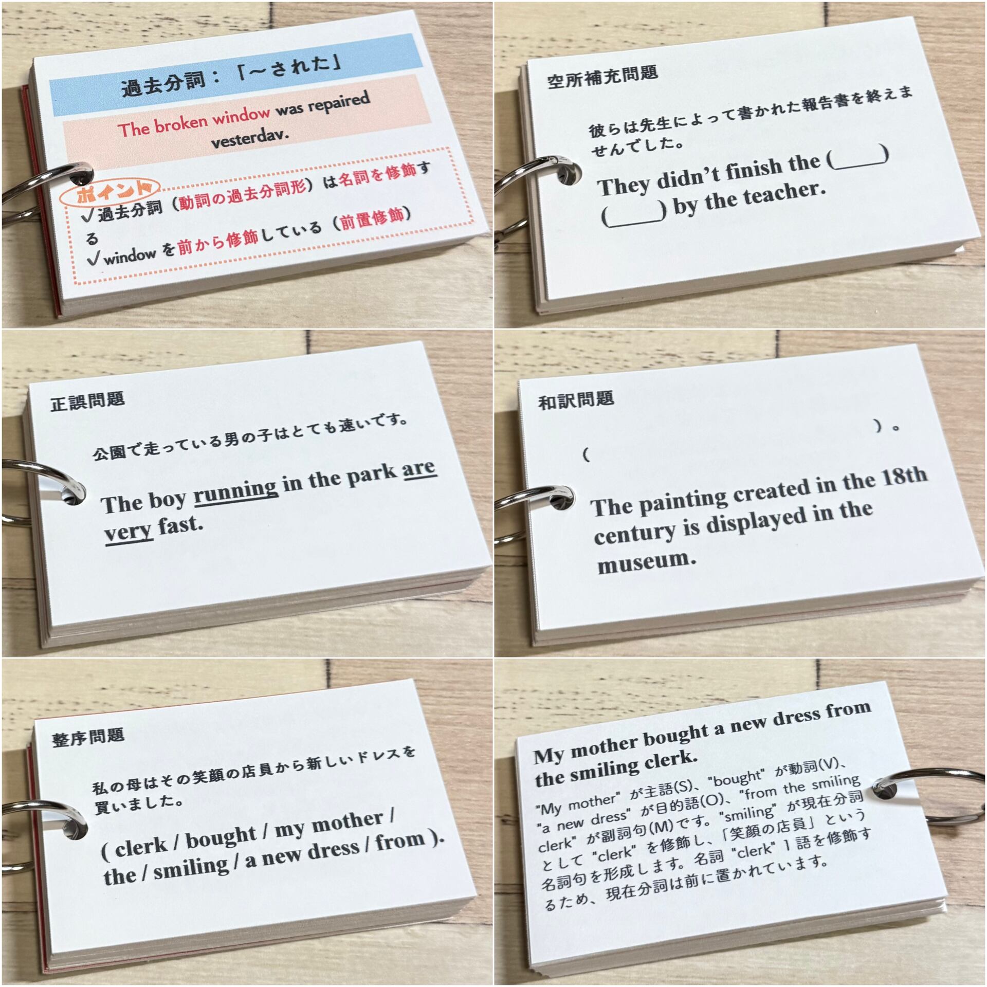 【分詞】単元別英文法カード 中学生 テスト 復習 予習 試験 参考書 学習 勉強 暗記カード 暗記カード 単語高校受験 高校入試 検定 夏休み 自主学習 英文読解 英文解釈 英単語 英作文 英訳