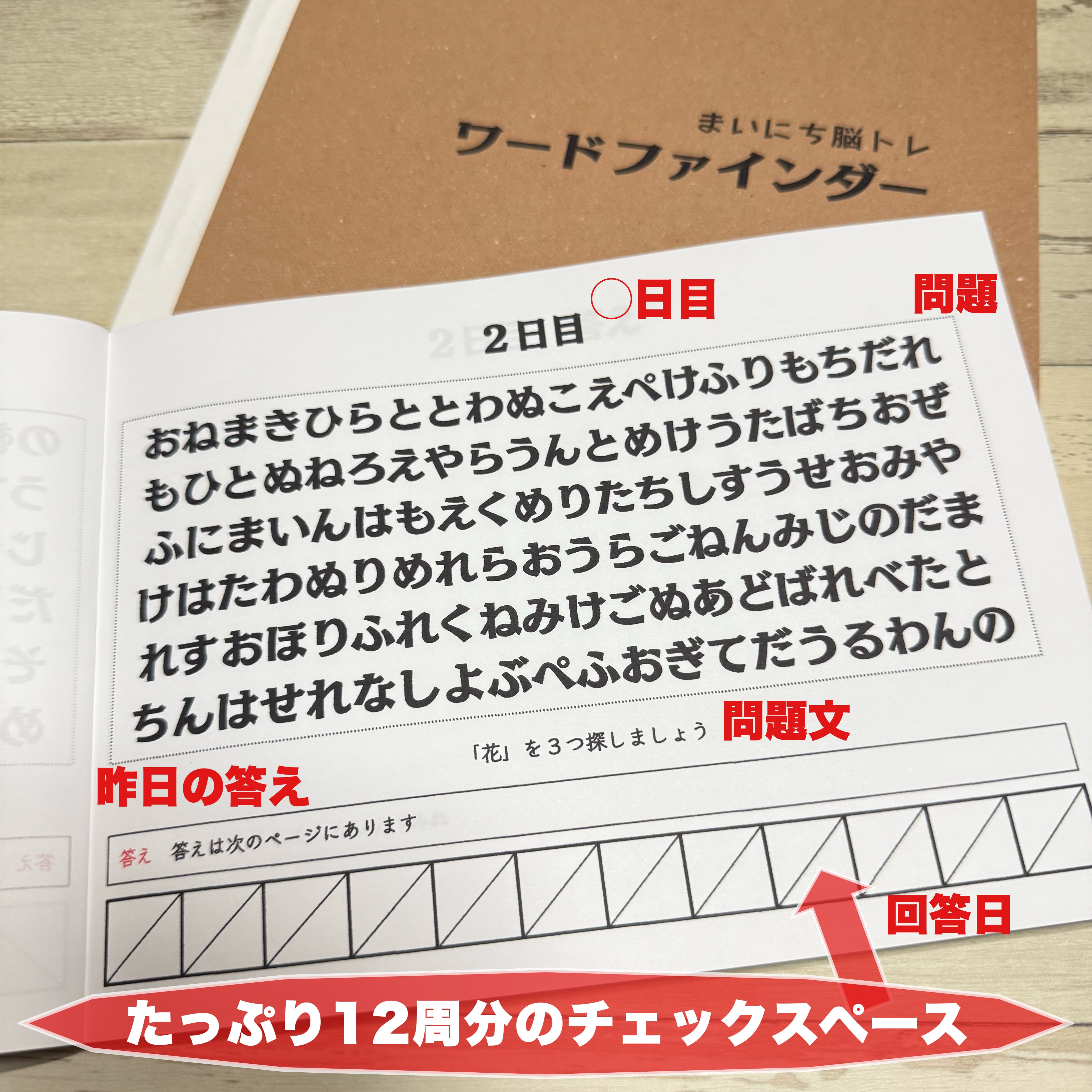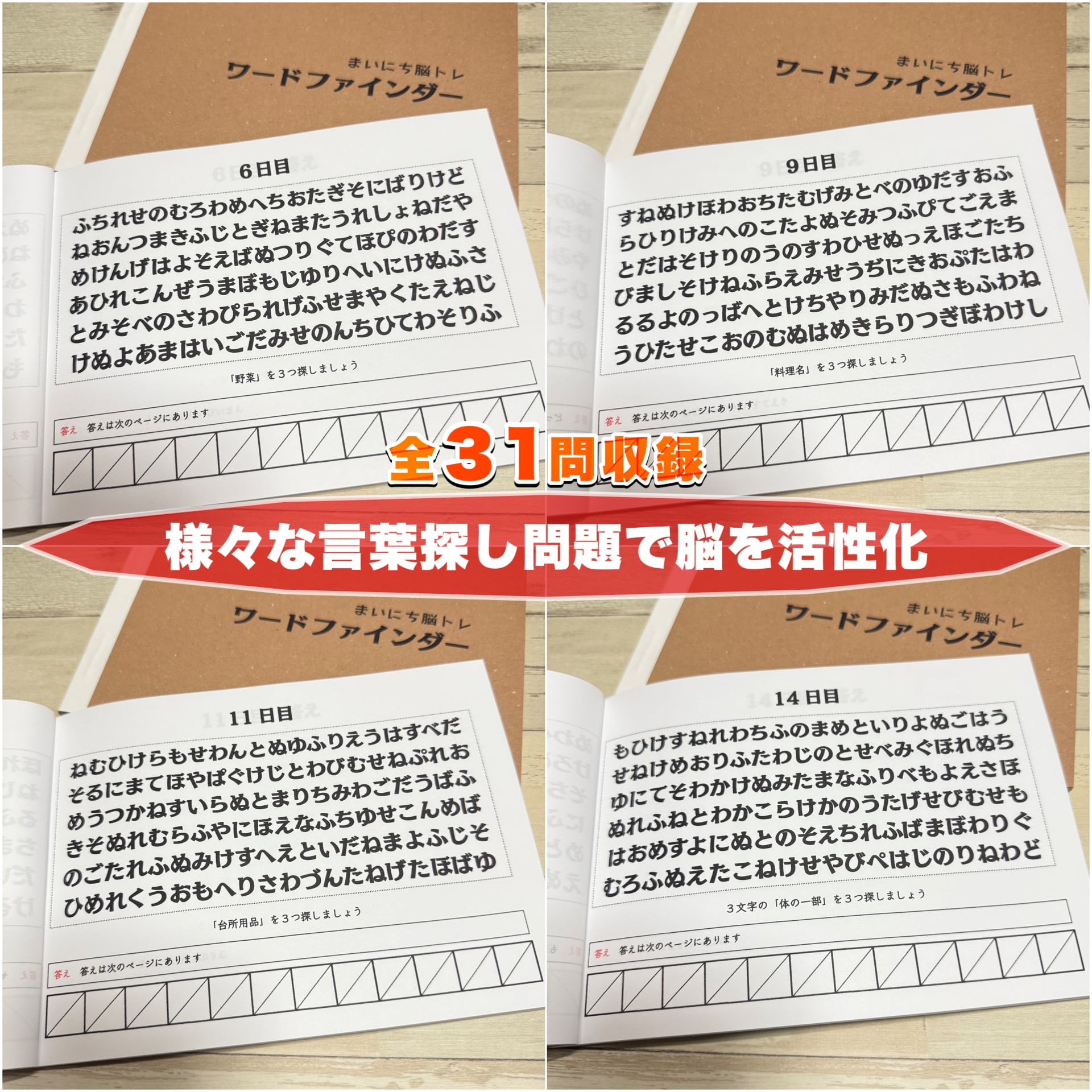 1日1問、全31問(1ヶ月分)のワードファインダー問題を収録し、どなたでもクイズ感覚で取り組めます。