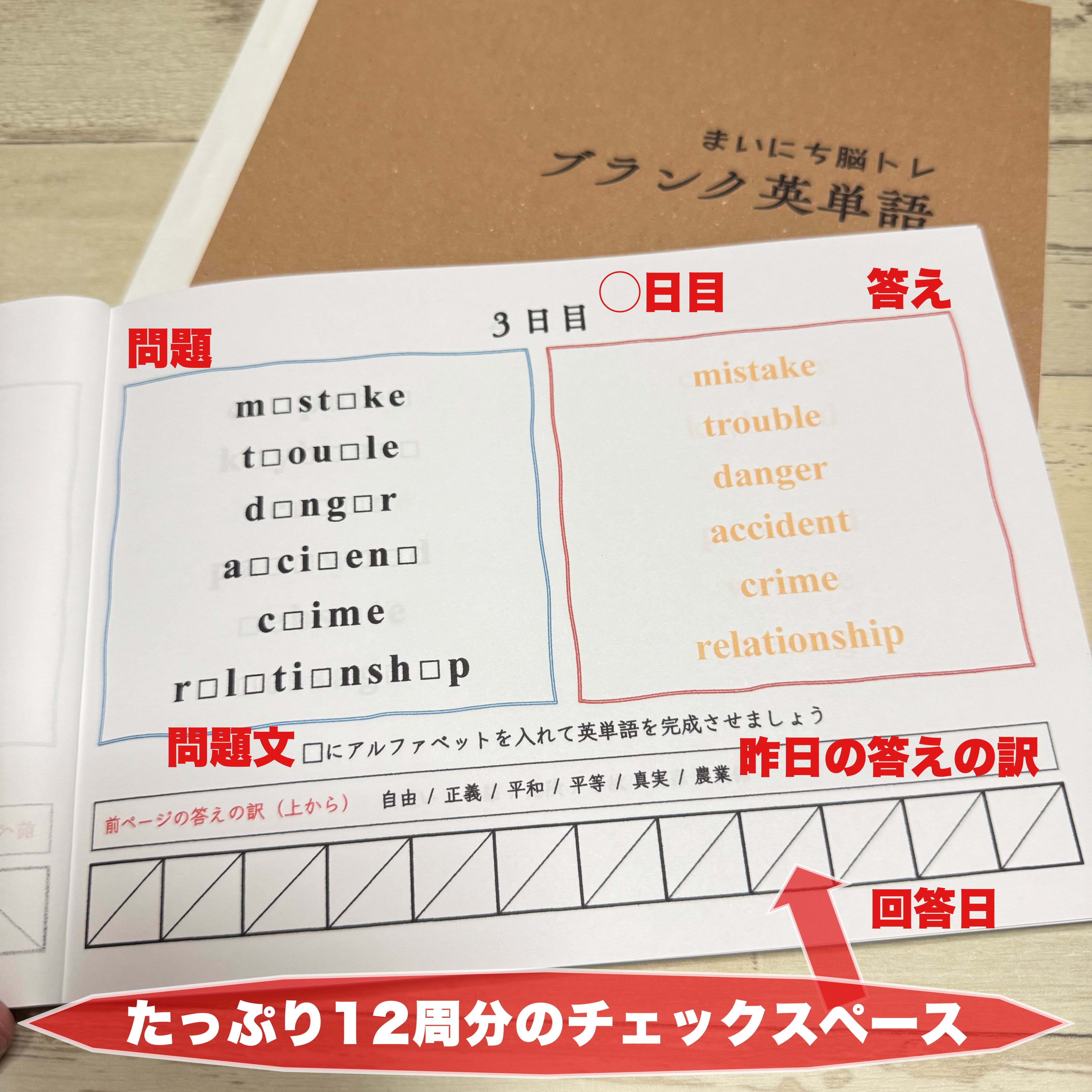 【まいにち脳トレドリル】ブランク英単語 クイズ 頭の体操 ひらめき リハビリ なぞなぞ 介護 問題集 小学生 中学生 幼稚園 保育園 知育教材 幼児教育