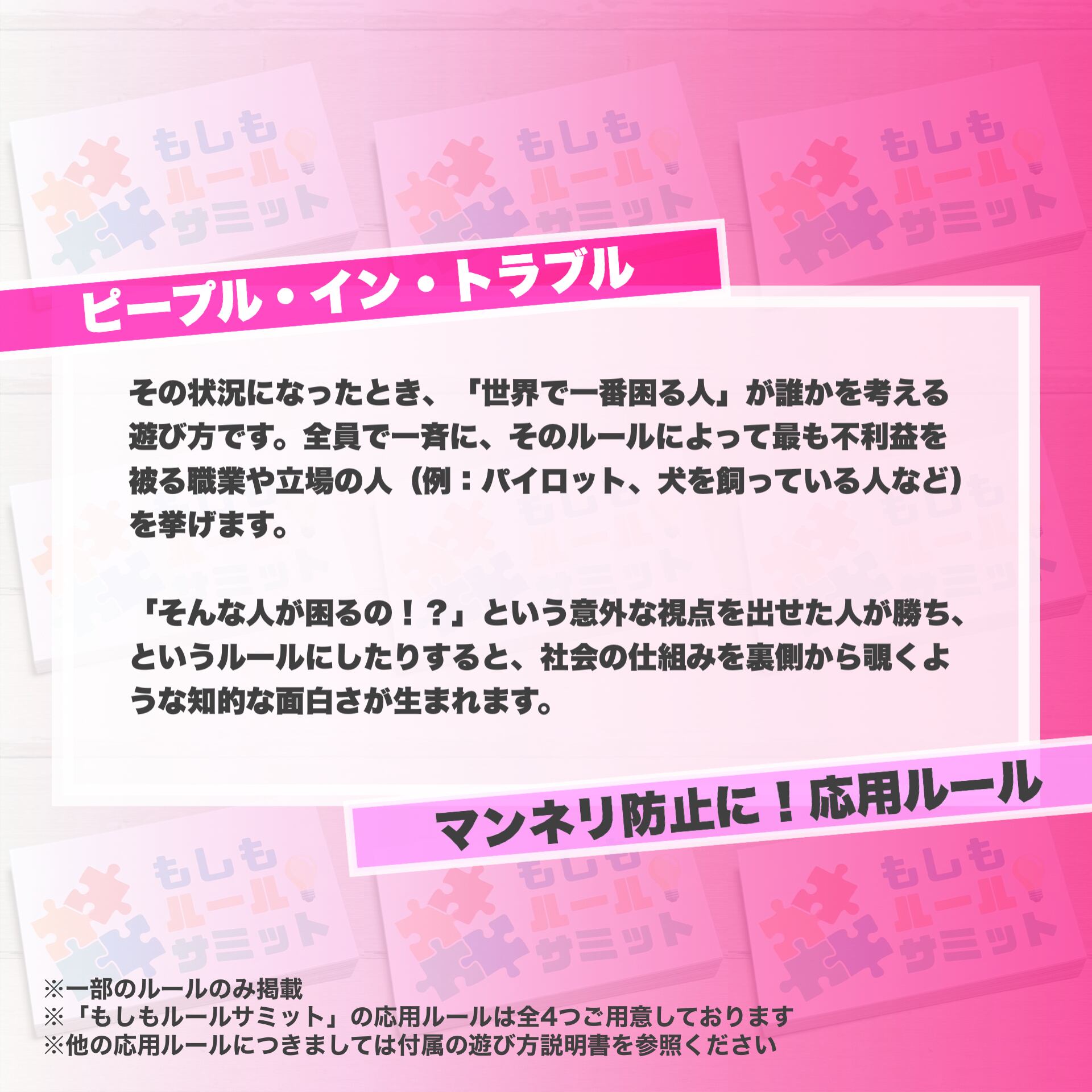 【もしもルールサミット】ボードゲーム パーティー 趣味 友達 家族 論理的思考力 創造力 判断力 協調性 旅行 レクリエーション 幼稚園 保育園 小学生 中学生 高校生 大学生 リハビリ 介護 パズル