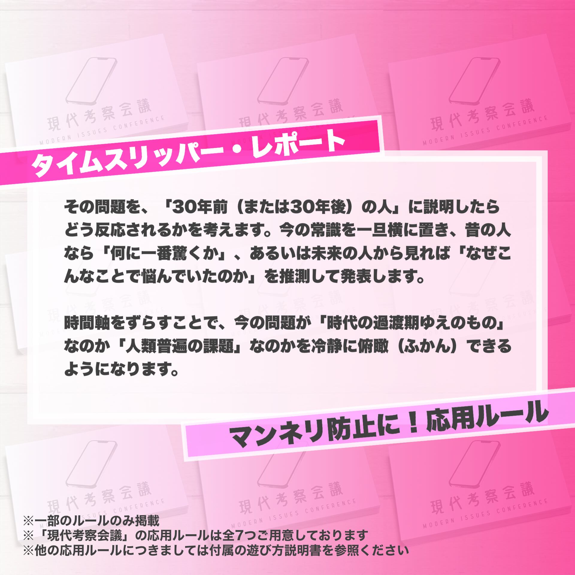 【現代考察会議】ボードゲーム パーティー 趣味 友達 家族 論理的思考力 創造力 判断力 協調性 旅行 レクリエーション 幼稚園 保育園 小学生 中学生 高校生 大学生 リハビリ 介護 パズル