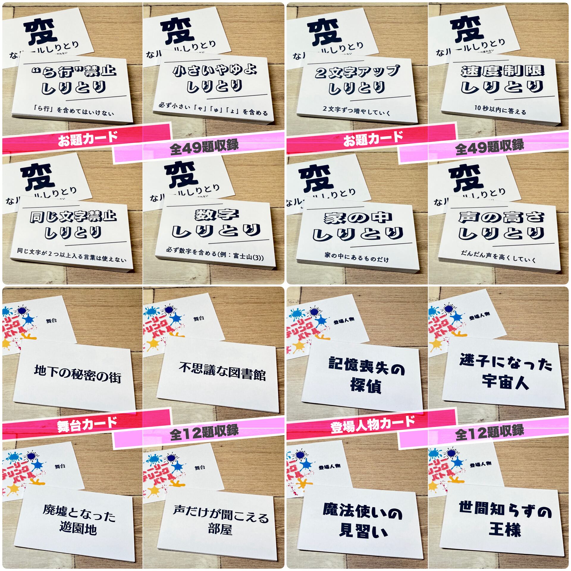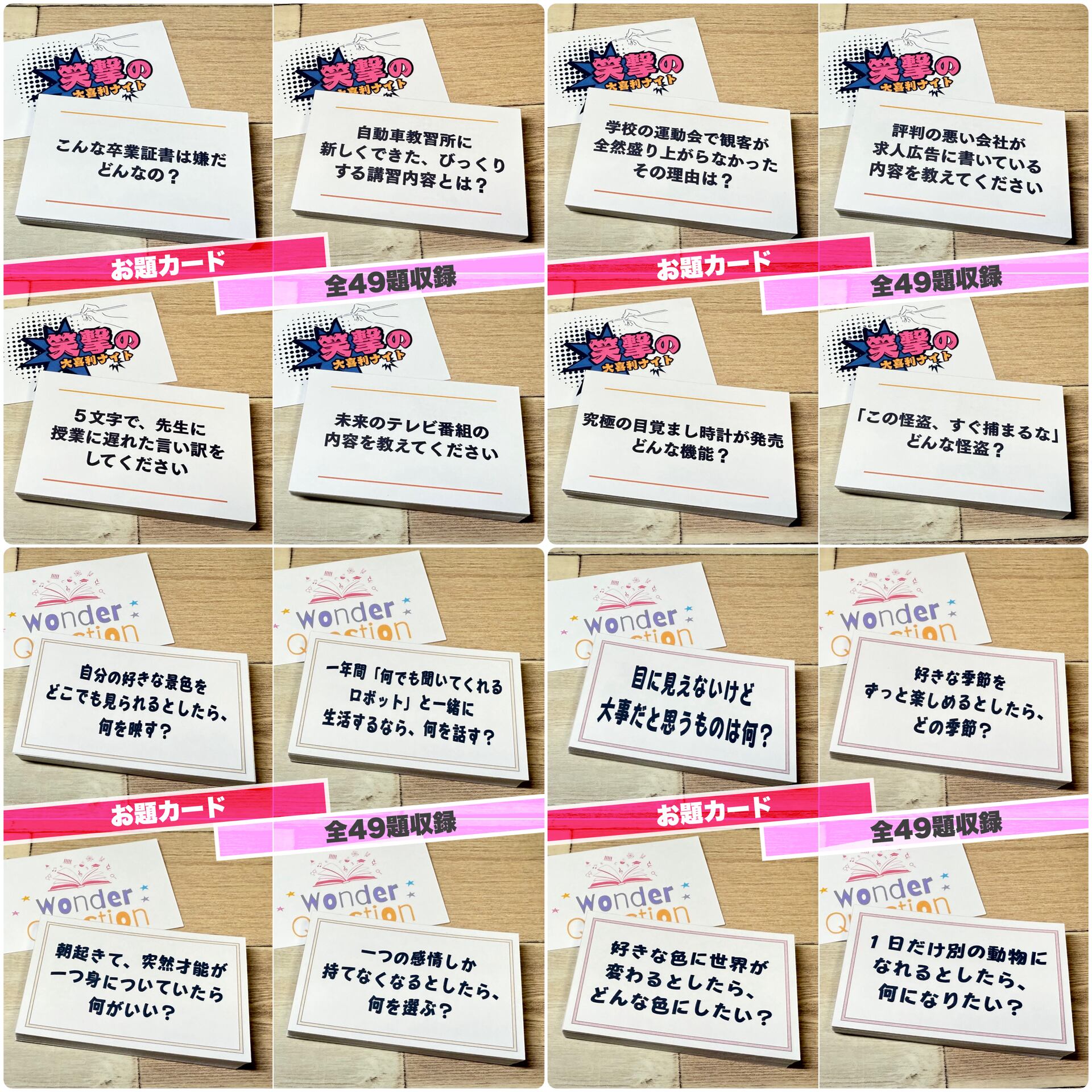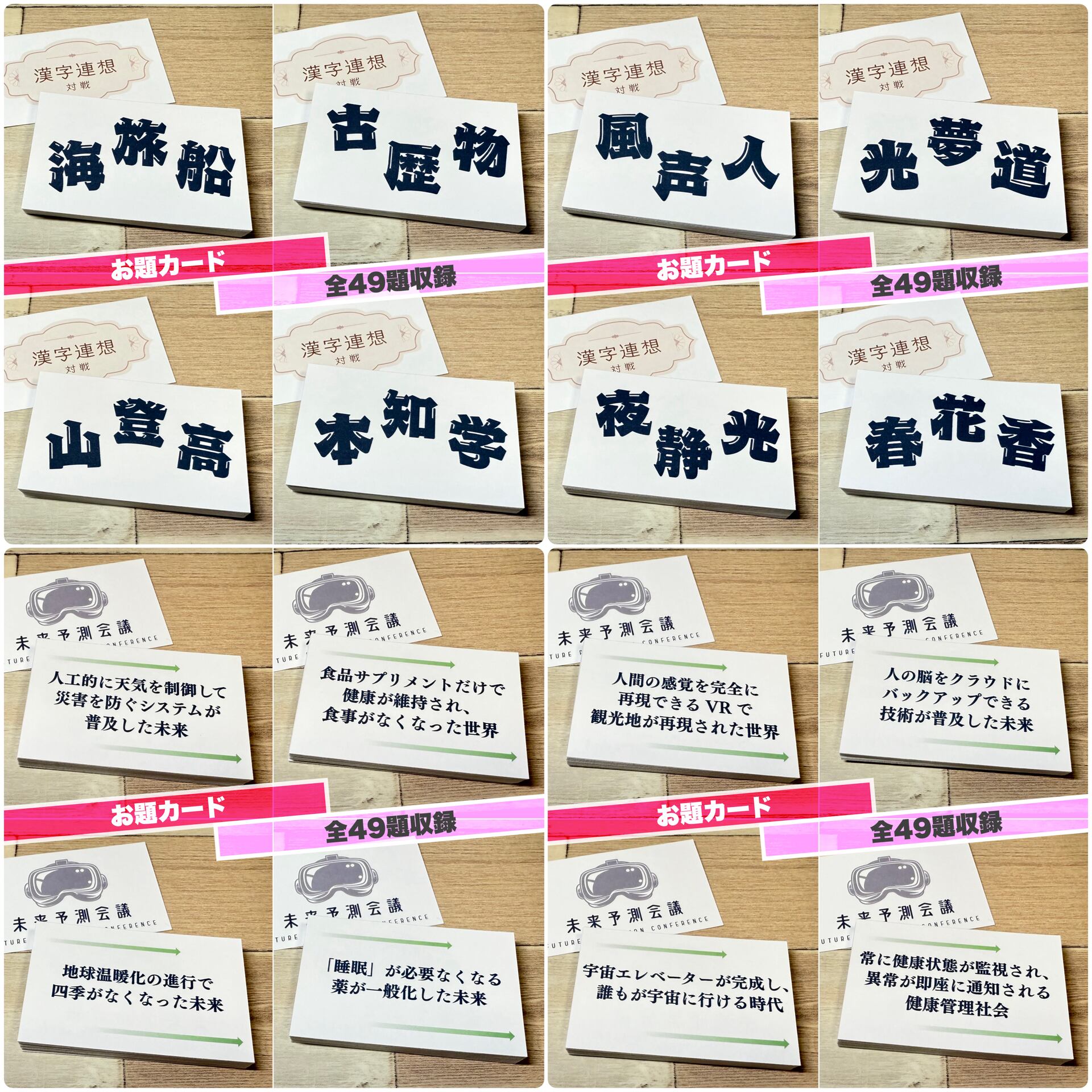 大喜利・対話・価値観テスト・脳トレなど、言葉とアイデアを遊び尽くす24種類のボードゲームセットです。前作の8種に加え、さらにバリエーション豊かな16種が加わり、どんな場面でも盛り上がれるボリュームに進化しました。