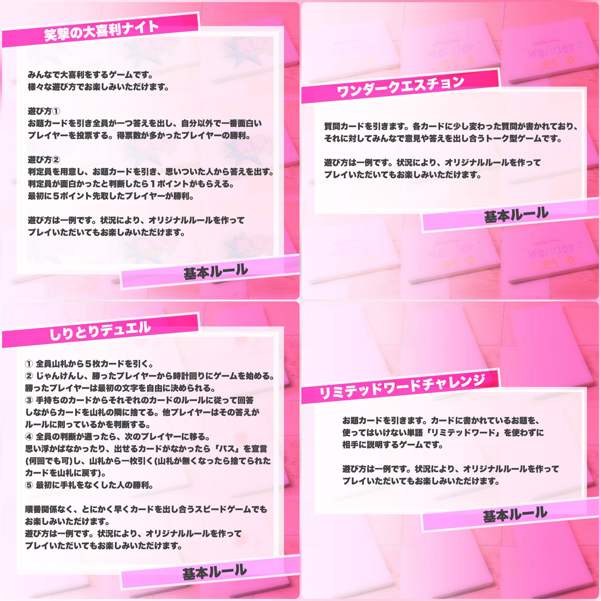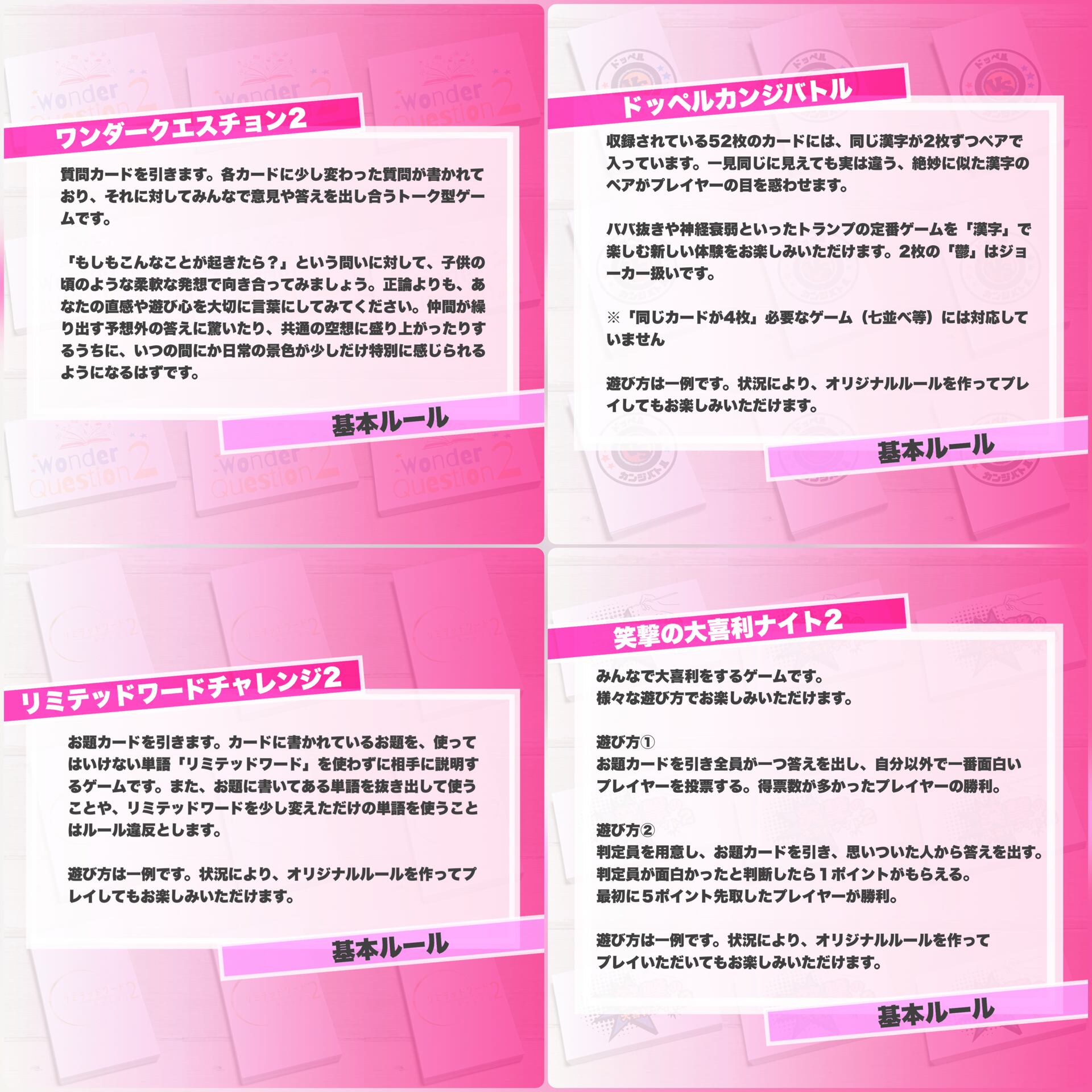 各ゲームの基本・応用ルールにつきましては、画像および単品ページをご参照ください。