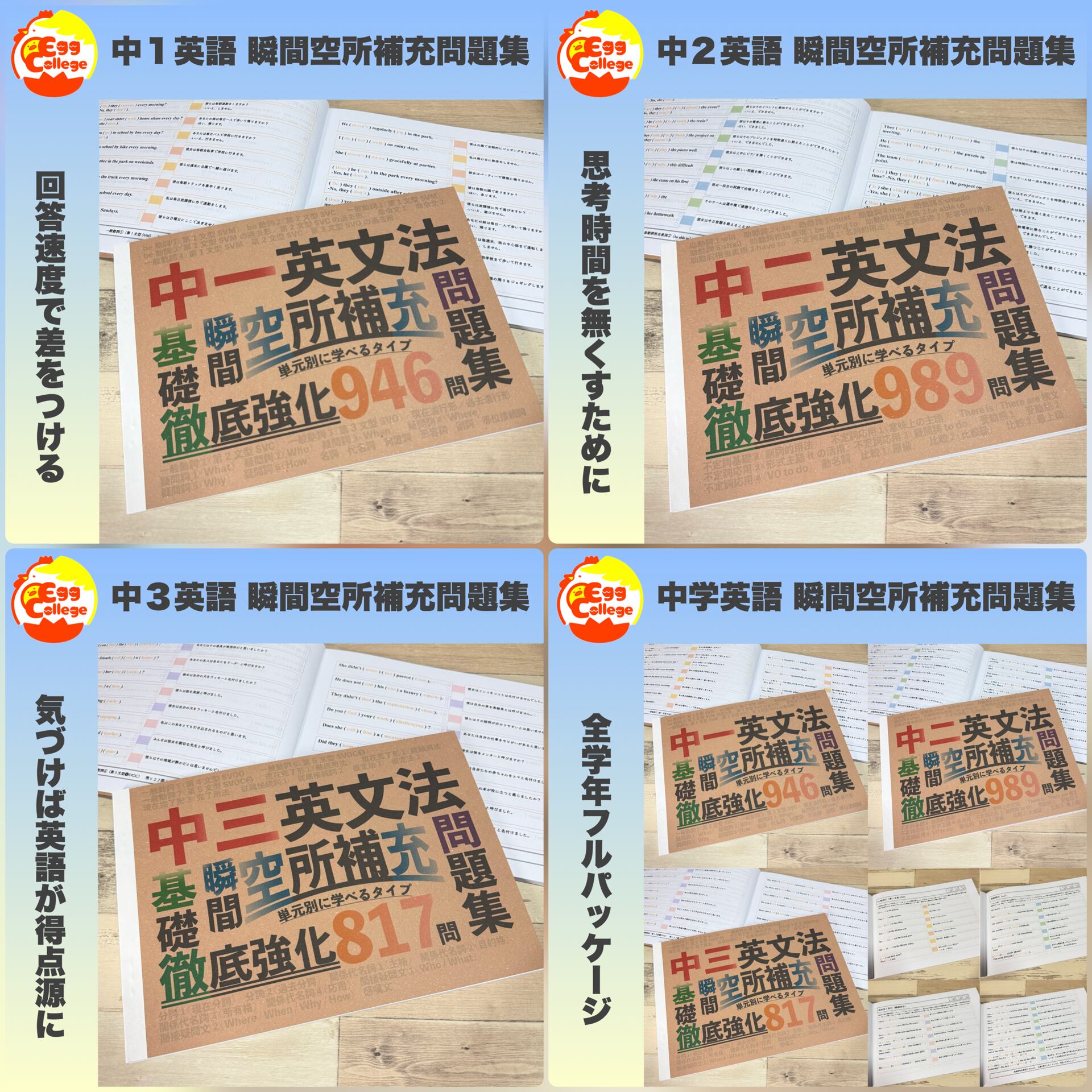 中一英文法 瞬間空所補充問題集 中学1年生 中学英語 中学生 テスト 復習 予習 試験 参考書 学習 勉強 高校受験 高校入試 検定 中学英文法 夏休み 自主学習 英文読解 英文解釈 英単語 英作文 英訳
