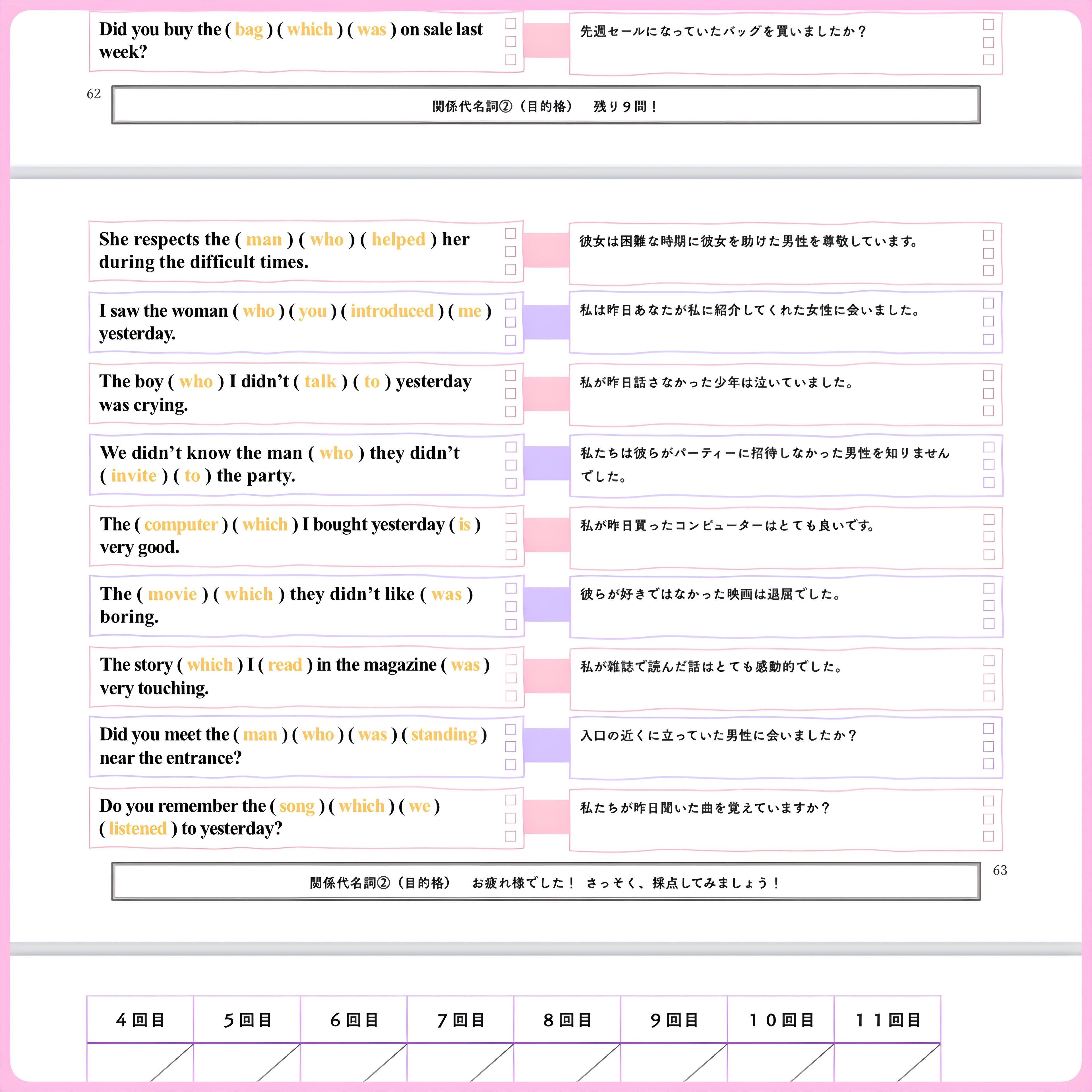 ・繰り返し解くことで、テストや入試の整序問題に対して即座に反応できる力がつきます。
