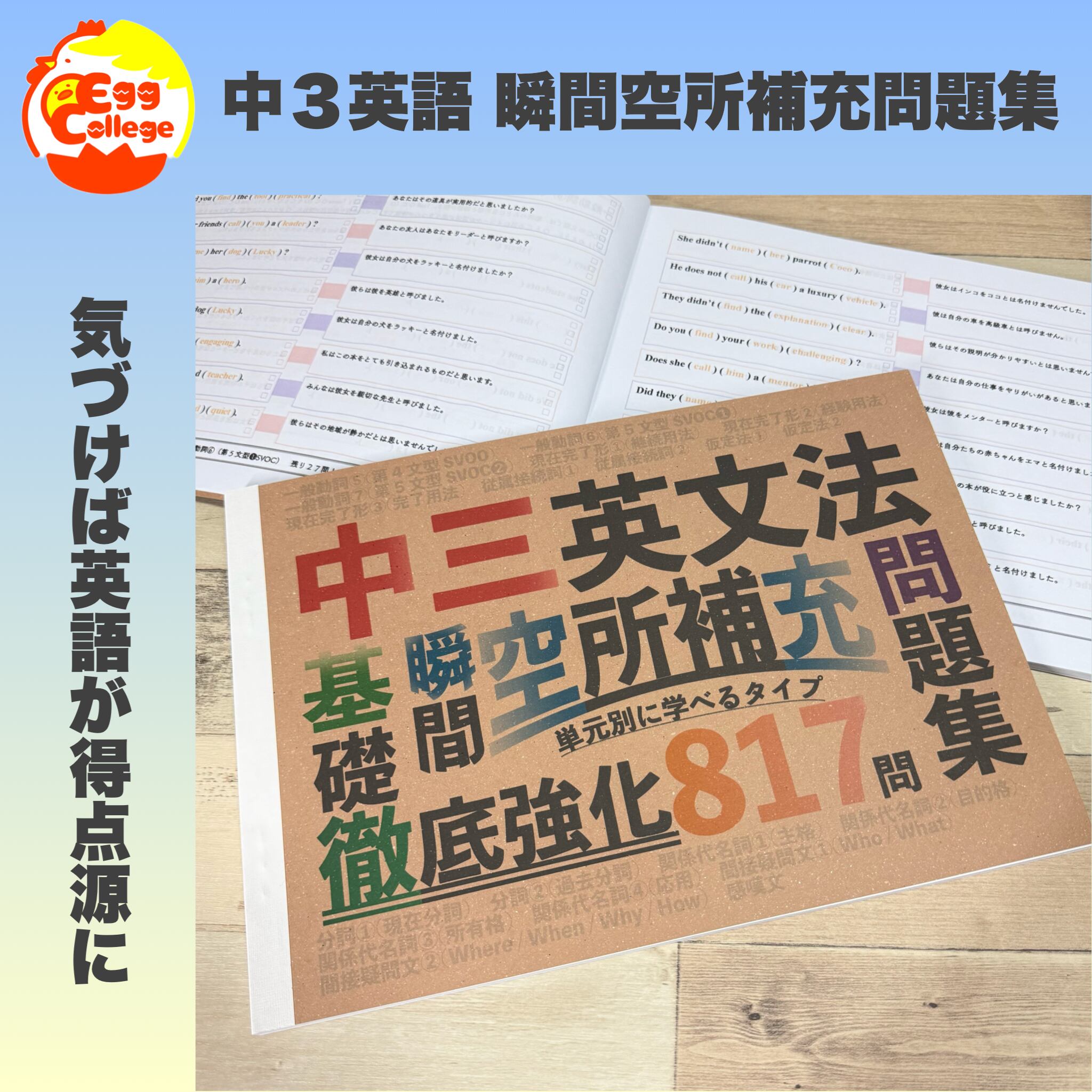 中三英文法 瞬間空所補充問題集 中学3年生 中学英語 中学生 テスト 復習 予習 試験 参考書 学習 勉強 高校受験 高校入試 検定 中学英文法 夏休み 自主学習 英文読解 英文解釈 英単語 英作文 英訳